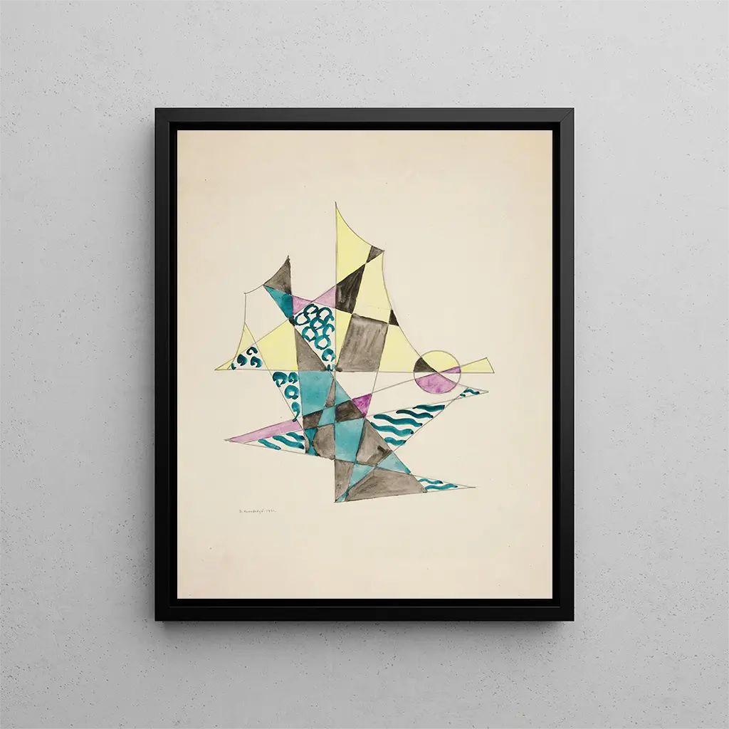 Art print Abstraction inspired by the sails I - David Kakabadze – Captivating introduction In the fascinating universe of abstract art, the work "Abstraction inspired by the sails I" by David Kakabadze stands out for its depth and originality. This piece, emblematic of the early 20th century, embodies a quest for freedom and expression that still resonates today. Kakabadze, a major figure of the Georgian artistic movement, manages to capture the very essence of modernity through fluid shapes and vibrant colors. Contemplating this work, the viewer is transported to a world where imagination and reality meet, offering a visual experience that is both stimulating and soothing. Style and uniqueness of the work Kakabadze's work is characterized by a bold approach to abstraction. In "Abstraction inspired by the sails I," the forms intertwine with an almost airy lightness, evoking the movement of sails in the wind. The sinuous lines and delicate hues combine to create a visual dynamic that invites contemplation. The artist skillfully plays with contrasts, alternating between shadows and lights, to give life to a composition that seems both stable and in motion. This work is not just a visual representation; it is an invitation to feel, to immerse oneself in a universe where each color tells a story, and each shape evokes an emotion. The artist and his influence David Kakabadze, born in 1889, is often considered a pioneer of modern art in Georgia. His career was marked by a constant exploration of the boundaries between traditional and contemporary art. Influenced by movements such as cubism and fauvism, Kakabadze developed a unique style that is his own. His ability to incorporate Georgian cultural elements into a modern aesthetic allowed him to stand out on the international art scene. Through his work, he not only redefined artistic conventions but also inspired a new generation of artists to express themselves freely. Kakabadze's impact is still felt today, both in Georgia and abroad, where his