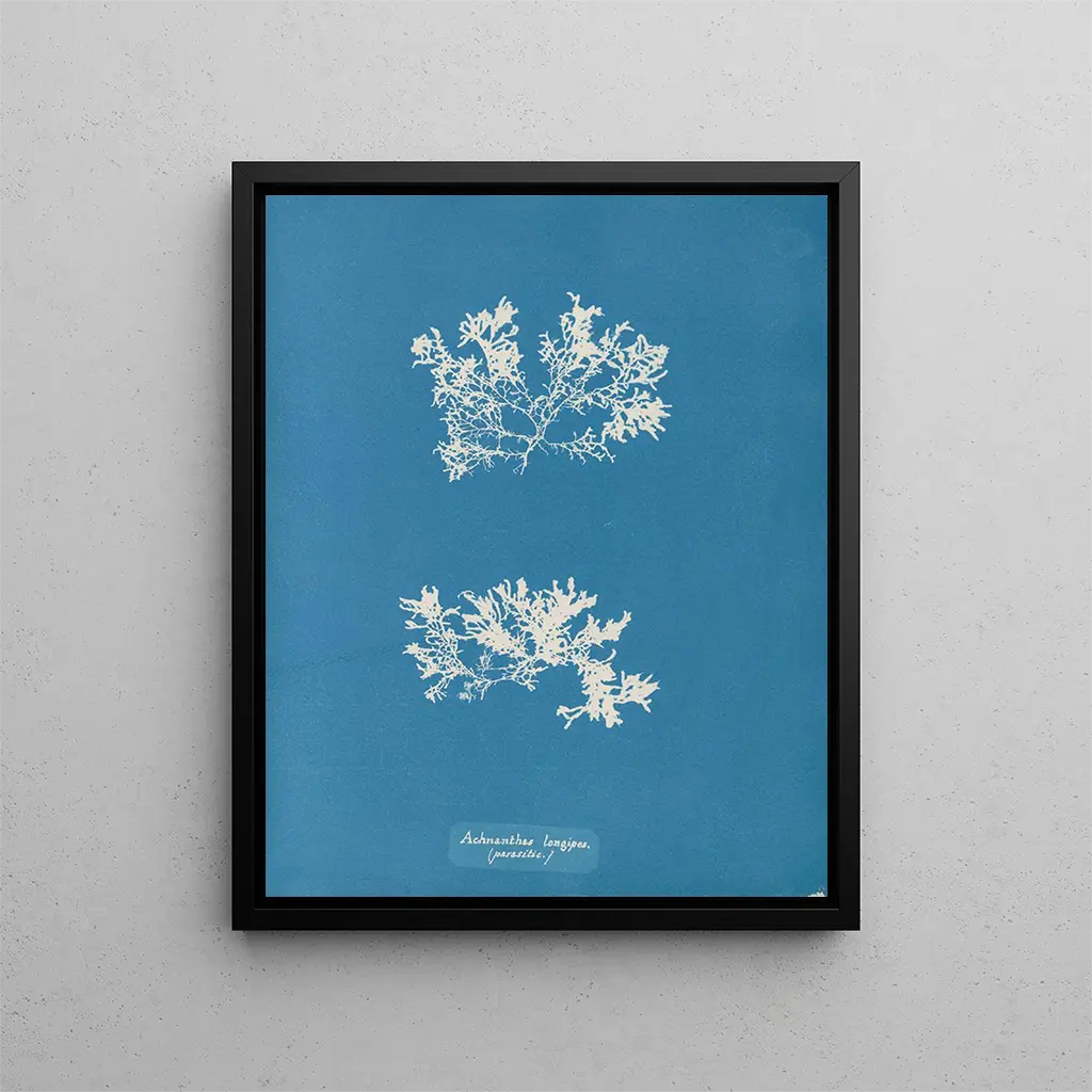 Anna Atkins' work "Achnanthes longipes parasite" is much more than a simple botanical representation; it is a true celebration of natural beauty and science. Created in the 19th century, this iconic piece embodies the harmonious marriage between art and science, a trend that emerged during that period. Anna Atkins, a pioneer of photography and botanist, captured the delicacy of algae through innovative techniques. Her cyanotype method, which uses sunlight to print images, gives her works an ethereal, almost magical quality. The art print of "Achnanthes longipes parasite" allows admirers to immerse themselves in this fascinating universe, where nature and art meet with rare elegance.