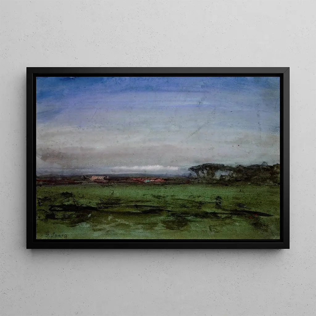 Through the Countryside: an ode to peaceful nature In this artwork, George Inness transports us to the heart of a serene rural landscape. The composition, dominated by soft shades of green and brown, evokes a calming, almost meditative atmosphere. Delicate brushstrokes and diffuse light create a harmonious balance between the sky and the earth. Majestic trees, rolling fields, and cloudy skies blend to form a scene where time seems to stand still. This canvas, a true invitation to contemplation, reminds us of the simple and timeless beauty of nature. George Inness: the master of American landscape painting George Inness, an iconic figure of 19th-century American landscape painting, captured the essence of nature with a unique sensitivity. Influenced by the Romantic movement and the spiritual philosophies of his time, he developed a style that transcends mere representation. His works, often inspired by European landscapes, reflect a quest for light and harmony. Inness was also a pioneer in using color to evoke emotions, which marked his era and influenced many artists. His legacy endures, making him an essential figure in art history. A decorative acquisition with multiple assets The art print of "Through the Countryside" is an ideal decorative choice to enrich your interior. Whether in a living room, office, or bedroom, this canvas adds a touch of calm and natural beauty. The quality of the reproduction guarantees fidelity to the details and colors of the original work, allowing you to enjoy its aesthetic appeal daily. By incorporating this piece into your decor, you create a welcoming and inspiring space, where every glance is drawn into the enchanting landscape.