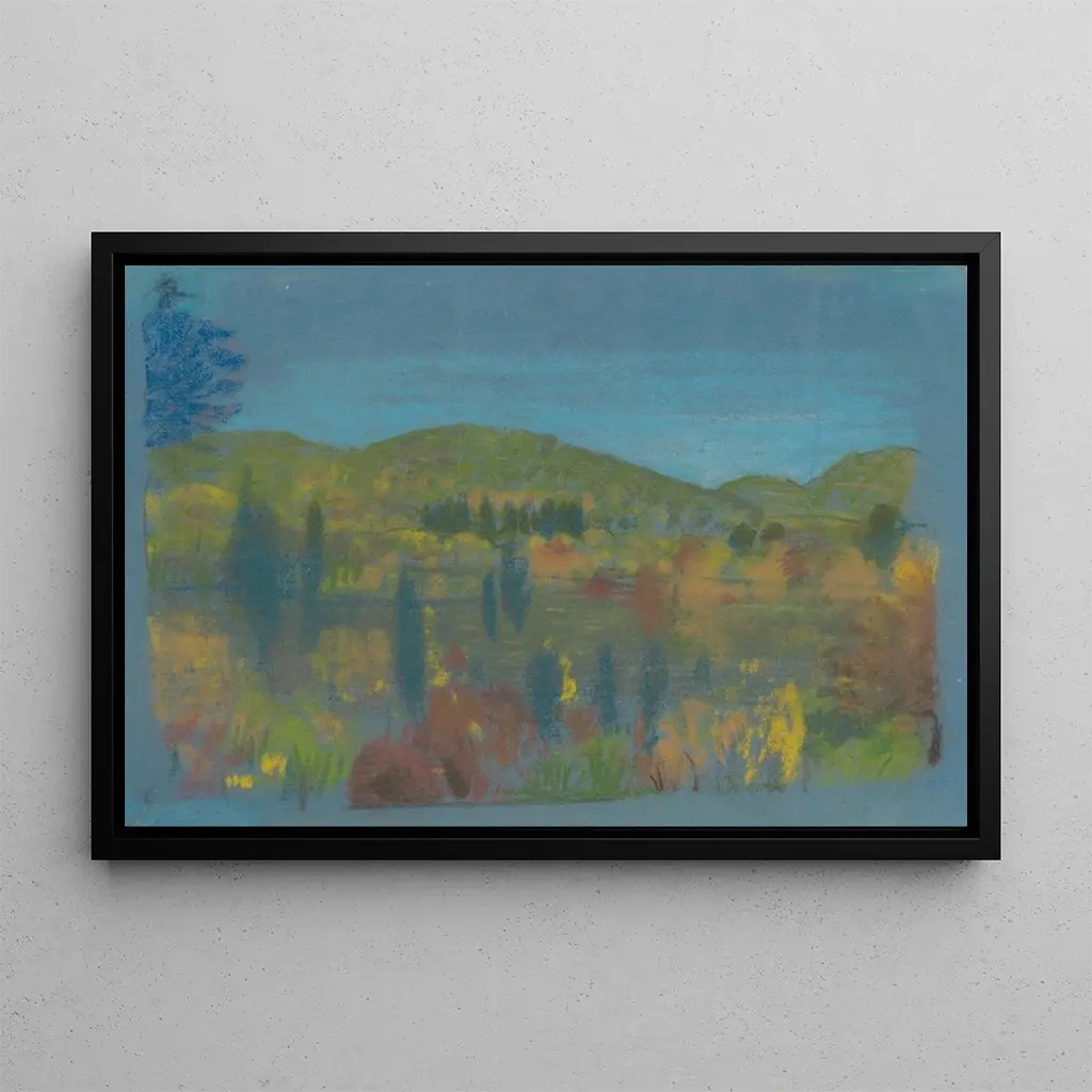 Arthur Bowen Davies, active in the late 19th and early 20th centuries, is often regarded as a forerunner of American symbolism. Influenced by European movements, he skillfully integrated mystical and poetic elements into his work. His landscapes, like this one, reflect a quest for transcendence and harmony with nature. Davies was an active member of the New York art scene, participating in major exhibitions and influencing many contemporary artists. His ability to capture emotion through evocative landscapes has left a lasting mark on art history.