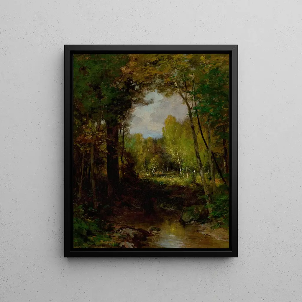 Keene Adirondacks Art print by Alexander Helwig Wyant – Captivating introduction The artwork "Keene Adirondacks" by Alexander Helwig Wyant stands as a visual testament to a nature that is both majestic and serene. Painted at the end of the 19th century, this canvas transports the viewer to the enchanting landscapes of the Adirondacks, a region that captivated many artists of the era. The soft light emanating from this piece evokes the first light of dawn, while the imposing mountains rise in the background, creating a striking contrast with the tranquility of the lakes in the foreground. Wyant, through his delicate approach and keen sense of observation, manages to capture the very essence of this place, making this artwork a true visual poem dedicated to nature. Style and uniqueness of the work The aesthetic of "Keene Adirondacks" is characterized by a subtle and harmonious color palette. The green and blue tones, which dominate the composition, evoke a sense of peace and tranquility. The interplay of light and shadow, skillfully rendered by Wyant, imparts an almost spiritual dimension to this landscape. The precision of details, from reflections on the water to the nuances of foliage, demonstrates a deep respect for nature. This piece is not merely a simple representation; it invites introspective contemplation, an immersion into a world where time seems suspended. Wyant's technique, blending realism and impressionism, allows one to feel the unique atmosphere of the Adirondacks, where each element of the painting seems to vibrate with its own life. The artist and his influence Alexander Helwig Wyant, born in 1836, is an emblematic figure of the American landscape movement. Influenced by the great masters of his time, he developed a personal style that combines the precision of drawing with poetic sensitivity. His career was marked by travels across the United States, but it is in the Adirondacks region that he found an inexhaustible source of inspiration. Wyant played a crucial role in the emergence of American landscape art, and his work paved the way for many artists who followed in his footsteps. His approach to the
