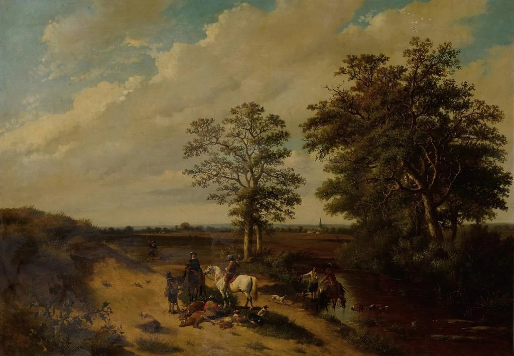 After the Hunt: A Frozen Moment in the Wilderness In this captivating art print, Johann Bernhard Klombeck immerses us in a hunting scene where movement and tranquility coexist. The earthy colors and shades of green evoke the richness of nature, while the soft light illuminates the faces of the characters. Klombeck's technique, blending realism and impressionism, creates a lively, almost tangible atmosphere. Every detail, from the foliage to the expressions of the hunters, tells a story of harmony between man and nature, inviting the viewer to contemplate this suspended moment in time. Johann Bernhard Klombeck: a master of romantic landscape art print Dutch artist of the 19th century, Johann Bernhard Klombeck is renowned for his landscapes and hunting scenes that capture the essence of rural life. Influenced by romanticism, he draws inspiration from the great masters of landscape painting, while developing a personal style that emphasizes light and color. Klombeck was able to immortalize scenes of everyday life with a unique sensitivity, making him an important figure of his era. His works, often imbued with melancholy, reflect a deep connection with nature and a respect for rural traditions. A decorative art print with multiple assets The reproduction of the painting After the Hunt is an ideal choice to enhance your interior decor. Whether in a living room, office, or bedroom, this canvas adds a touch of elegance and serenity. Its printing quality guarantees fidelity to the colors and details of the original artwork, allowing you to fully enjoy its aesthetic appeal. By integrating this art print into your space, you invite not only the beauty of nature into your home but also a conversation about art and history, making this piece a true decorative asset.