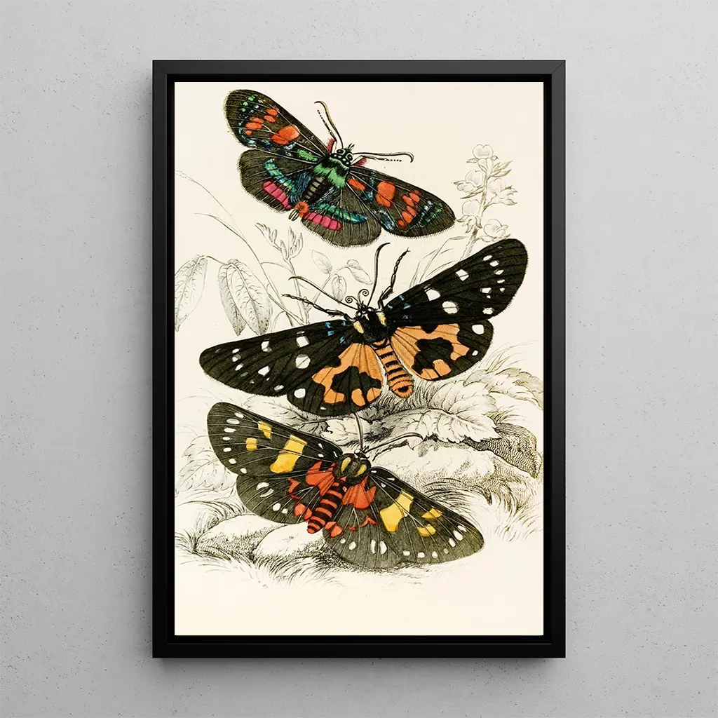 The art print of "Agarista picta Eusemia lectrix Eusemia maculatrix" is a perfect choice to enhance your interior decor. Whether in an office, a living room, or a bedroom, this canvas attracts attention with its vibrant beauty and natural charm. The quality of the reproduction guarantees fidelity to the colors and details of the original artwork, bringing a touch of elegance and freshness to your space. By integrating this piece into your decor, you create an inspiring atmosphere, while celebrating the beauty of nature and the art of naturalist illustration.