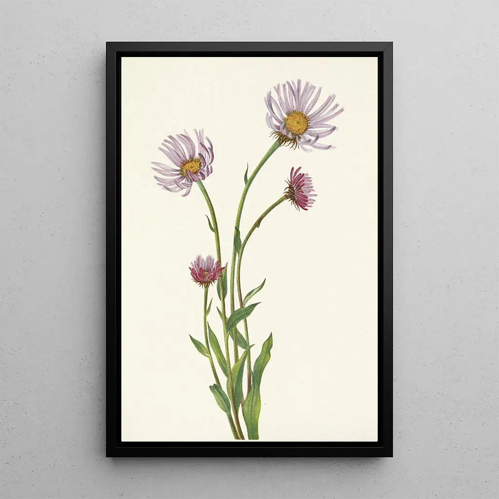 Vergerette d'Alaska Erigeron salsuginosus: an ode to wild nature The art print of the Vergerette d'Alaska, or Erigeron salsuginosus, immerses us in a vibrant and delicate floral universe. The shades of violet and white blend harmoniously, evoking the freshness of North American prairies. The watercolor technique, used by Mary Vaux Walcott, gives this piece a lightness and transparency that capture the light in an almost magical way. The atmosphere emanating from this canvas invites peaceful contemplation, where each petal seems to tell a story of resilience and natural beauty. Mary Vaux Walcott: a pioneer of botanical art Mary Vaux Walcott, active in the early 20th century, is recognized for her commitment to documenting North American flora through her art. Influenced by the naturalist movement, she mastered combining scientific precision with artistic sensitivity. Her works, often created during her explorations in wild regions, testify to a time when nature conservation was beginning to gain importance. As a member of the American Botanical Society, Walcott contributed to education and awareness about biodiversity, making her an emblematic figure of botanical art. A decorative acquisition with multiple assets This art print of the Vergerette d'Alaska is an ideal choice to enhance your interior, whether in a living room, office, or bedroom. Its print quality and fidelity to the original colors guarantee undeniable aesthetic appeal. By integrating this canvas into your decor, you bring a touch of nature and serenity to your space. Moreover, its timeless style adapts to various décors, whether modern or traditional, making this piece a true decorative asset.