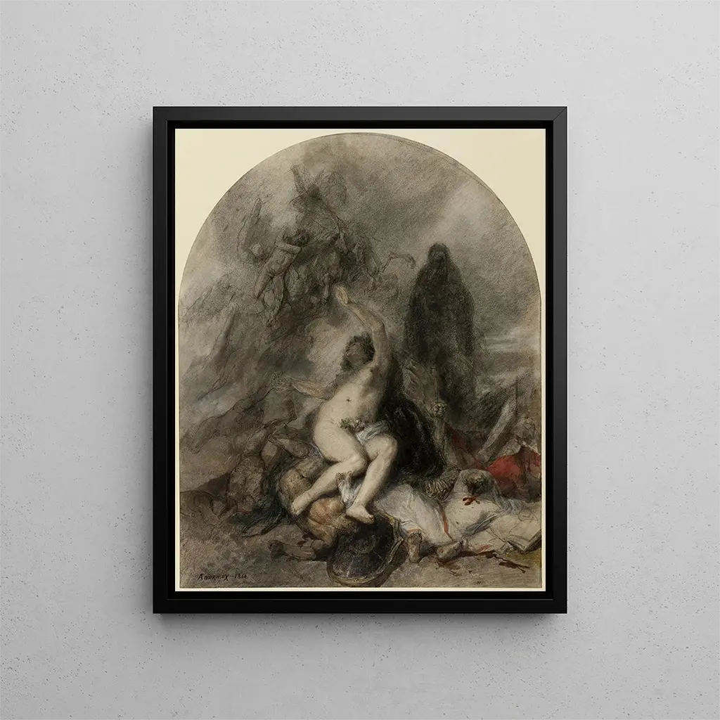 The artwork "Allégorie of War" by Clément-Auguste Andrieux presents itself as a striking tableau, an open window into the torments and glories that war engenders. This piece, rich in symbols and emotions, invites viewers to a profound reflection on the consequences of violence and human nature. Through vibrant colors and dynamic forms, Andrieux manages to capture the very essence of war—both destructive and fascinating. Contemplating this art print, one immediately feels a palpable tension, a mixture of fear and admiration for the power of art and the impact of war on the human soul.