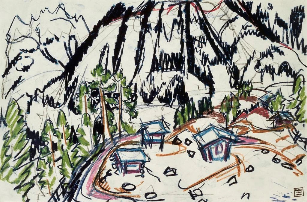 In this art print of the Chalets alpins Frauenkirch, Albert Müller captures the essence of Swiss mountain landscapes. The soft shades of green and blue blend with the warm tones of wooden chalets, creating a peaceful and welcoming atmosphere. The watercolor technique, with its subtle gradations, brings to life every detail, from snowy peaks to reflections in the water. This artwork invites contemplation, evoking the tranquility of the Alps and the charm of traditional constructions that blend harmoniously into their natural environment.
