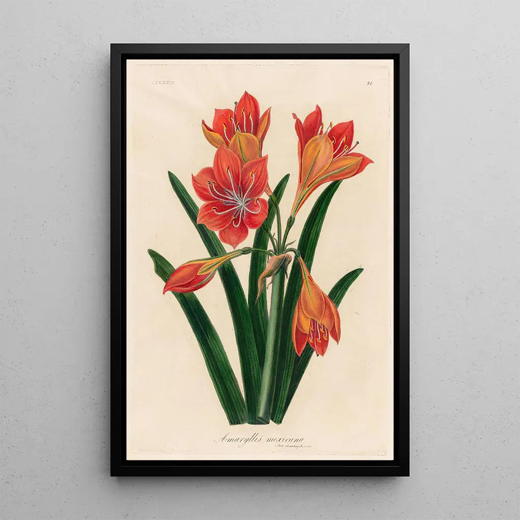 Amaryllis mexicana: a stunning bloom of beauty The art print "Amaryllis mexicana" by Gaetano Savi stands out with its vibrant colors and harmonious composition. The delicate petals, in a dazzling red, bloom gracefully, while the shades of green in the leaves provide a striking contrast. The artist's technique, blending botanical accuracy with artistic sensitivity, creates an atmosphere that is both realistic and poetic. This art print invites you to immerse yourself in the floral universe, where every detail is carefully observed, revealing the ephemeral beauty of nature. Gaetano Savi: a pioneer of artistic botany Gaetano Savi, a botanist and artist of the 18th century, masterfully combined science and art in his works. Trained in meticulous plant observation, he was influenced by the great masters of his time, while developing a unique style that is entirely his own. Savi contributed to the documentation of plant species, notably through his illustrations which have become references in the field. "Amaryllis mexicana" reflects his commitment to scientific precision while celebrating natural beauty, a legacy that endures in the history of botanical art. A decorative acquisition with multiple advantages The art print "Amaryllis mexicana" is an ideal choice to enhance your interior, whether in a living room, office, or bedroom. Its print quality and fidelity to the original colors make it a centerpiece that captures the eye and inspires admiration. This artwork adds a touch of freshness and vitality to your decor, while evoking the splendor of nature. By choosing this canvas, you opt for a piece that combines aesthetics and culture, perfect for art and botany enthusiasts.
