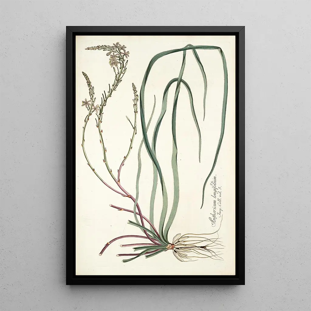 Anthericum longifolium: a delicate botanical symphony The art print "Anthericum longifolium" by Nikolaus Joseph Freiherr von Jacquin is a captivating representation of this plant, capturing its beauty and complexity. The composition is distinguished by elegant lines and meticulous details that reveal the finesse of the leaves and flowers. The colors, ranging from tender green to bright white, create a soothing and harmonious atmosphere. The watercolor technique, used with mastery, renders the transparency of the petals and the texture of the leaves, offering an invitation to contemplate nature. Nikolaus Joseph Freiherr von Jacquin: a pioneer of botanical illustration Nikolaus Joseph Freiherr von Jacquin, botanist and artist of the 18th century, made his mark with contributions to science and art. Influenced by exploration voyages and the discovery of new species, he dedicated his life to the study of plants. His work sits at the crossroads of science and art, accurately illustrating botanical specimens while giving them an aesthetic dimension. Jacquin played a key role in the development of botanical illustration, and his works continue to inspire naturalists and contemporary artists. A decorative acquisition with multiple assets The art print "Anthericum longifolium" is a decorative piece that will enhance various spaces in your interior, whether in a living room, office, or bedroom. Its print quality and fidelity to the original work guarantee undeniable aesthetic appeal. By integrating this art print into your decor, you bring a touch of nature and elegance, while creating a serene and inspiring atmosphere. This piece is not only a tribute to the beauty of botany but also a conversation starter that will delight your guests.
