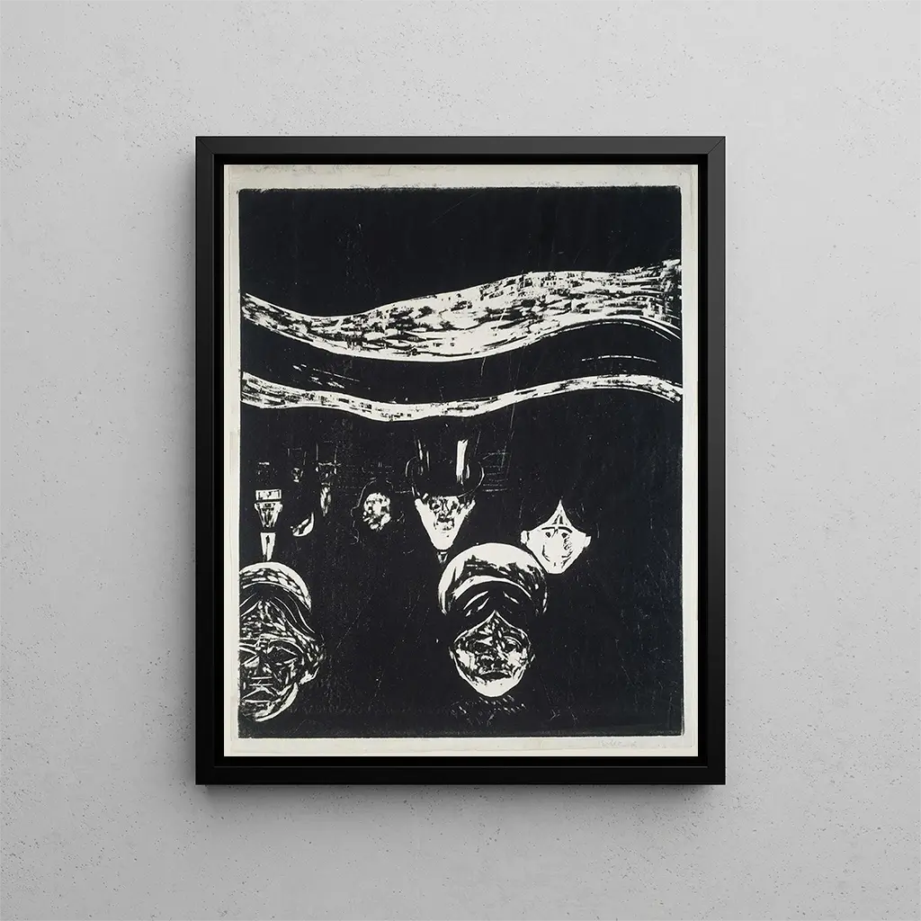 Edvard Munch's "Anxiety" artwork embodies a poignant exploration of human emotional turmoil. Through this canvas, the Norwegian artist manages to capture the very essence of anguish, a recurring theme in his oeuvre. This piece, created at the end of the 19th century, stands out for its ability to evoke universal feelings, resonating with the existential anxiety that inhabits every individual. By contemplating this art print, viewers are invited to immerse themselves in a world where emotions are tangible, where the fragility of the human soul is revealed with unsettling intensity. Style and uniqueness of the artwork Munch's style is often associated with the expressionist movement, and "Anxiety" is no exception. The color palette, dominated by dark shades and striking contrasts, creates an atmosphere of discomfort and unease. The forms are distorted, almost organic, reinforcing the idea of a troubled inner reality. The faces of the figures, though stylized, express a range of emotions that transcend time and space. Munch uses flowing lines and blurred contours to emphasize psychological tension, making the work both disturbing and captivating. This innovative approach to the treatment of light and shadow, as well as the bold use of colors, makes "Anxiety" an iconic piece, revealing the depths of the human soul. The artist and his influence Edvard Munch, born in 1863, is often regarded as one of the pioneers of modern expressionism. His personal life, marked by tragedies and psychological struggles, profoundly influenced his art. Munch was able to translate his own anxieties into powerful works that continue to inspire generations of artists. "Anxiety" is part of a series of works where the artist explores themes of death, love, and solitude. His unique approach to painting, combining symbolism and expressionism, paved the way for many subsequent artistic movements. Munch's reflections
