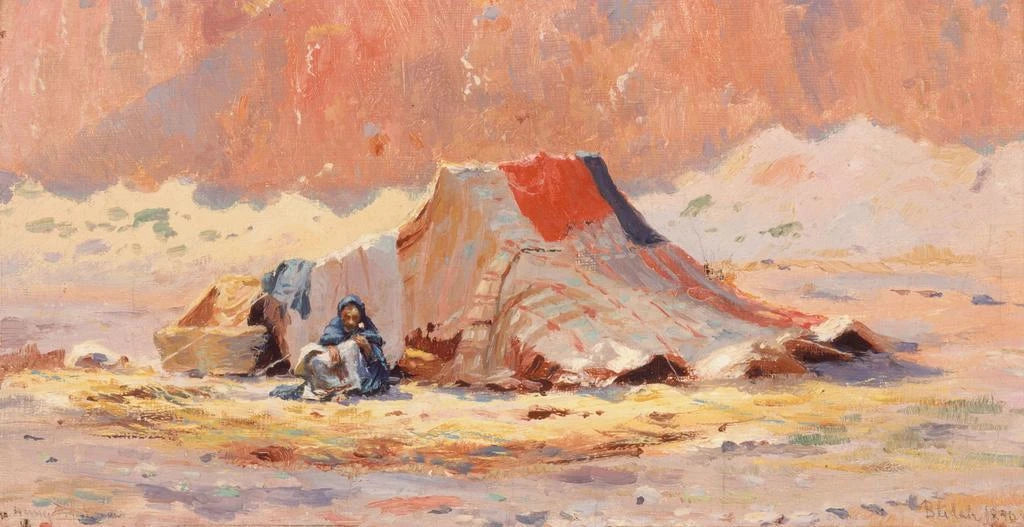 Henry Brokman, a 20th-century painter, is known for his works inspired by Eastern cultures. His artistic journey has been marked by travels around the world, notably in North Africa, where he drew his inspiration. Brokman has successfully combined elements of Western art with Eastern influences, creating a unique style that is entirely his own. Tent in the Desert Blidah is a testament to his interest in exotic traditions and landscapes, while also revealing his talent for depicting daily life in diverse cultural contexts.