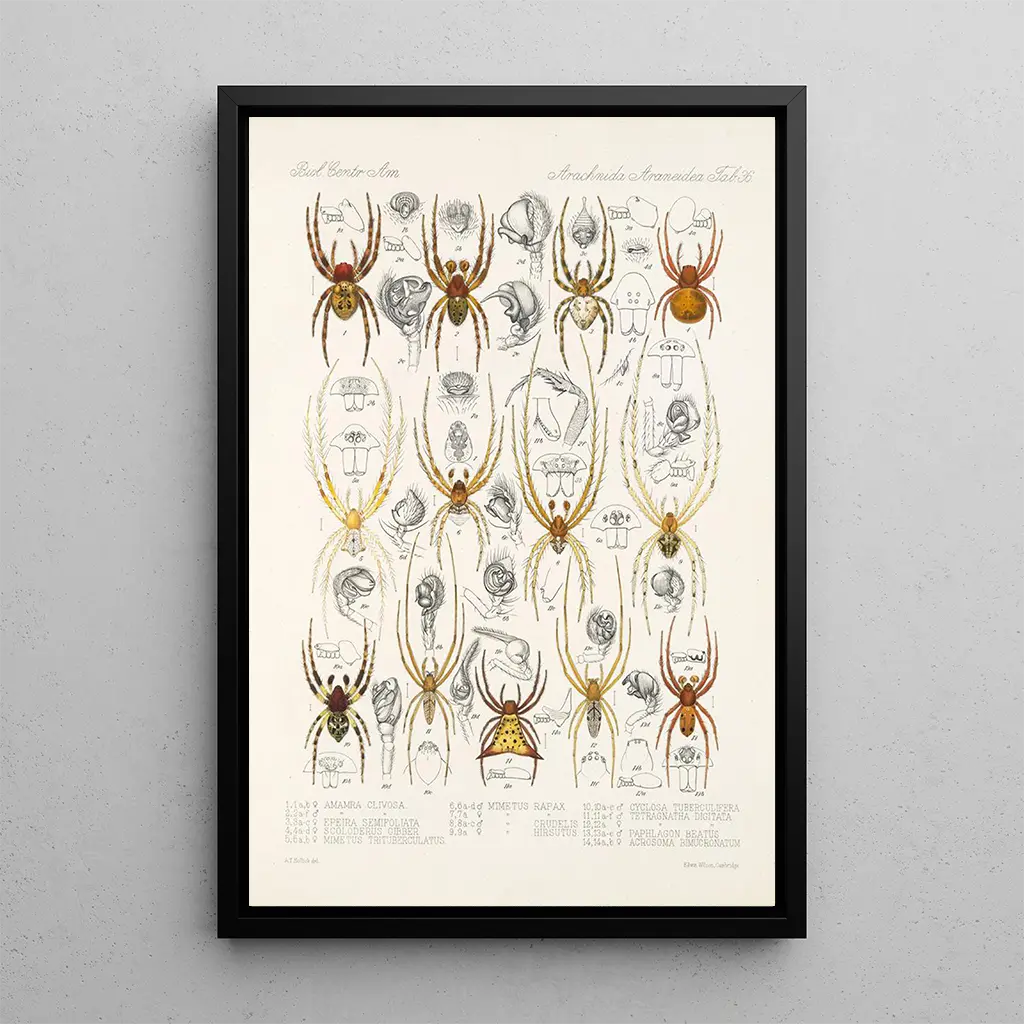 The art print "Arachnida Araneidea Pl 36" makes a captivating decorative addition to various spaces, whether a living room, office, or bedroom. Its exceptional print quality and fidelity of details make it a choice piece for art and nature enthusiasts. This canvas, with its unique visual appeal, will awaken curiosity and enrich your interior decoration. By choosing this artwork, you opt to incorporate a touch of elegance and sophistication, while celebrating the beauty of the arachnid world.