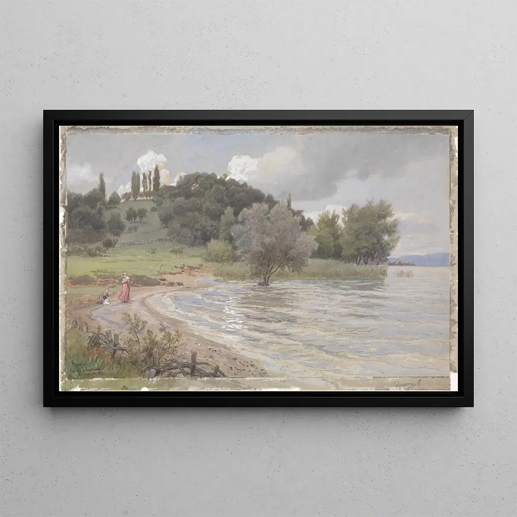 Arenenberg in Ermatingen, Lake Constance: an aquatic serenity revealed In this artwork, Hans Gude captures the tranquil beauty of Lake Constance, enveloping the viewer in an atmosphere of peace and contemplation. The shades of blue and green blend harmoniously, evoking the reflections of the water and the surrounding greenery. The composition, carefully balanced, invites a visual stroll along the peaceful shores, where every detail, from the white sails to the majestic trees, seems to breathe life. Gude's technique, marked by impressive realism, creates a total immersion in this idyllic landscape, making this art print a true masterpiece to admire. Hans Gude: a master of romantic landscape painting Hans Gude, a Norwegian painter of the 19th century, is renowned for his romantic landscapes that capture the magnificence of nature. Influenced by the great masters of his time, he developed a unique style, combining precision and poetry. Mainly active in Germany, Gude left an indelible mark in the art world, notably through his representations of Nordic and Alpine landscapes. His work, often compared to that of Caspar David Friedrich, demonstrates a deep connection with nature and a sensitivity to variations in light and color, making each canvas lively and evocative. A decorative piece with multiple virtues The art print of Arenenberg in Ermatingen, Lake Constance, is a decorative piece that fits perfectly into various spaces, whether a living room, an office, or a bedroom. Its print quality and fidelity to the original artwork guarantee an exceptional aesthetic rendering, bringing a touch of serenity and elegance to your interior. This picture invites dreaming and escapism, while enriching your decor with its timeless charm. Choosing this art print means adding an artistic and soothing dimension to your daily environment.