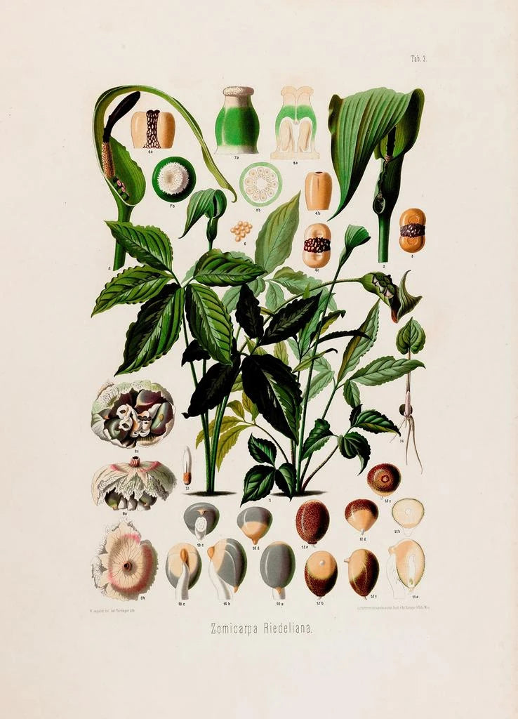 Heinrich Wilhelm Schott, renowned for his botanical illustrations in the 19th century, played a key role in documenting plant species. His work, characterized by a rigorous scientific approach, helped introduce many tropical plants to the general public. Schott was influenced by the botanical explorations of his time, and his oeuvre reflects a passion for nature and a desire to share its beauty. As an illustrator, he skillfully combined scientific precision with artistic sensitivity, making him an iconic figure in the field of botanical art.
