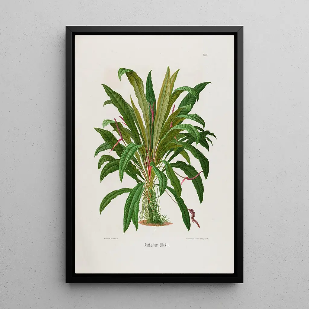 The Aroideae Maximilianae Pl06 art print immerses us in a lush universe where nature expresses itself with brilliance. The shades of green, ranging from light to dark, evoke the richness of tropical forests. The engraving technique used by the artist captures the delicate details of the leaves and stems, creating an atmosphere that is both soothing and captivating. Every element of this artwork seems to vibrate under the light, inviting the viewer to explore the subtleties of the flora. This canvas is a true celebration of natural beauty, a homage to the diversity of plant species.