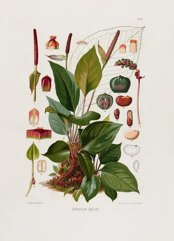 Heinrich Wilhelm Schott, a 19th-century botanist and illustrator, is recognized for his significant contributions to botanical science. Born in 1794, he dedicated his life to the study of tropical plants, particularly those of the Aroideae family. Influenced by the exploration voyages of his time, Schott was able to combine scientific rigor with artistic sensibility, enabling him to produce works of great aesthetic and documentary value. His work played a key role in understanding and classifying plant species, making him an essential figure in gardening and horticulture of his era.