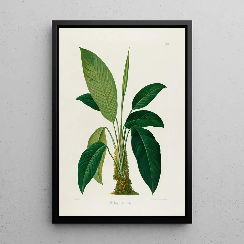 Aroideae Maximilianae Pl29: a botanical marvel to admire The artwork "Aroideae Maximilianae Pl29" by Heinrich Wilhelm Schott is a captivating illustration that captures the delicate beauty of this tropical plant. The meticulous details of the leaves, with their vibrant shades of green and varied textures, create a lively and immersive atmosphere. The watercolor technique, used with precision, renders the transparency of the leaves and the richness of the shadows, offering a visual depth that draws the eye. This art print is a true invitation to explore the plant world, where each element seems to breathe life. Heinrich Wilhelm Schott: a pioneer of botanical illustration Heinrich Wilhelm Schott, a 19th-century botanist and illustrator, played a vital role in the study and representation of tropical plants. His work is part of the scientific botanical movement, where careful observation and faithful depiction of species were paramount. Influenced by his travels in South America and Asia, Schott was able to capture the very essence of the plants he encountered. His illustrations, such as "Aroideae Maximilianae Pl29," testify to his commitment to science and art, making him a prominent figure of his time. A decorative acquisition with multiple advantages The art print "Aroideae Maximilianae Pl29" is a decorative piece that fits perfectly into various spaces, whether in a living room, office, or bedroom. Its print quality and fidelity to the original details make it an ideal choice for botanical and art enthusiasts. The aesthetic appeal of this canvas lies in its ability to bring a touch of nature and serenity to your interior. By choosing this artwork, you opt for a decoration that is both elegant and enriching, inspiring admiration and curiosity.