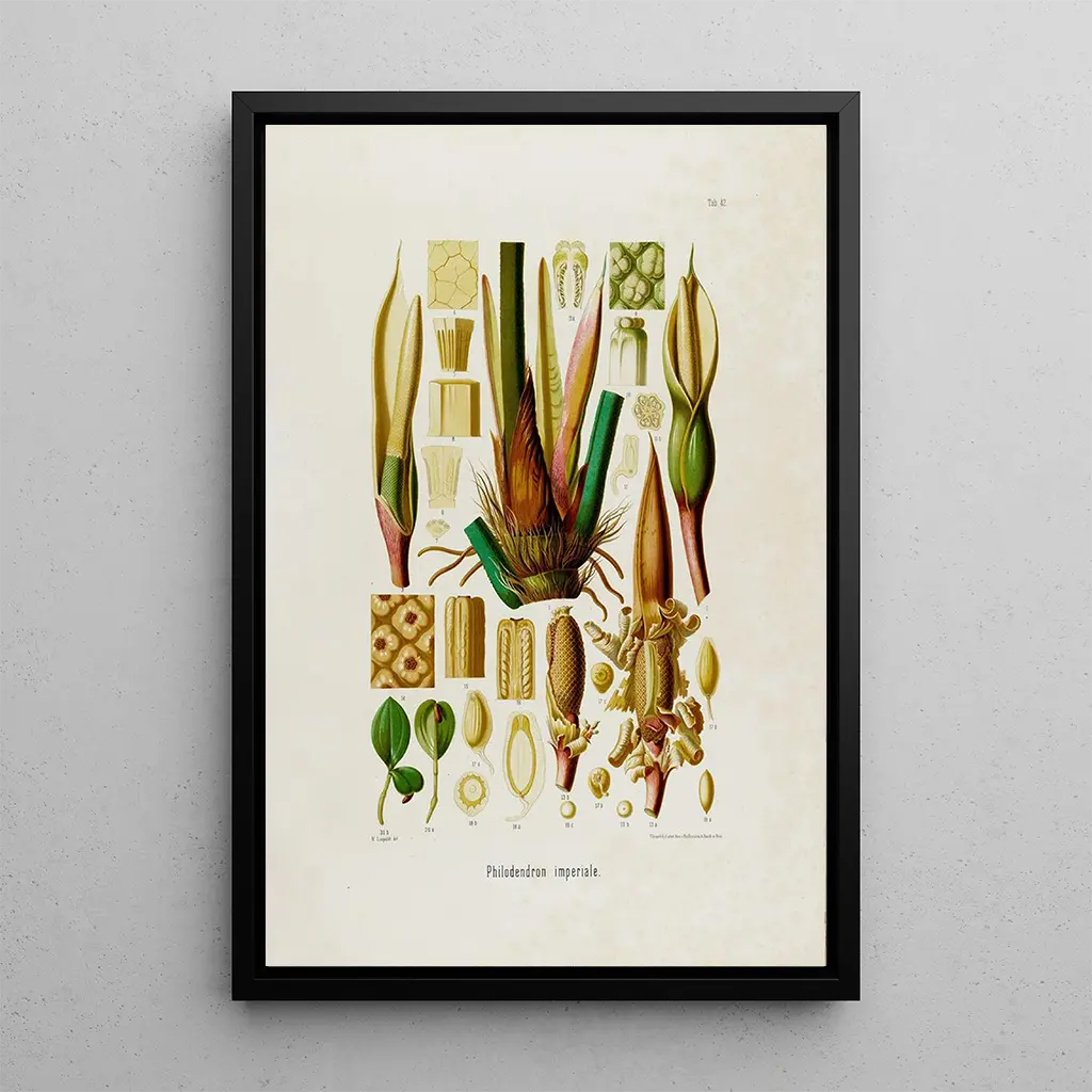 Aroideae Maximilianae art print Pl42 : an ode to botanical diversity The art print Aroideae Maximilianae Pl42 is characterized by its delicate composition and vibrant nuances. Each leaf, meticulously detailed, appears to dance under the light, revealing rich textures and organic shapes. The watercolor technique, used by Schott, gives this piece an almost ethereal atmosphere, inviting the viewer to delve into the fascinating world of tropical plants. The colors, ranging from deep green to bright yellow, evoke the lushness of humid forests, creating a lively tableau that celebrates the beauty of nature. Heinrich Wilhelm Schott : a pioneer of artistic botany Heinrich Wilhelm Schott, 19th-century botanist and illustrator, is renowned for his contributions to the study of tropical plants. His work aligns with the scientific botany movement, where art and science meet to document biodiversity. Influenced by botanical explorations of his time, Schott captured the essence of the species he encountered, notably through his illustrations of the Araceae family. His work not only enriched botanical knowledge but also left a lasting artistic legacy, demonstrating the importance of visual representation in the study of plants. A decorative acquisition with multiple assets Choosing the art print Aroideae Maximilianae Pl42 means selecting a decorative piece that will add a touch of elegance and freshness to your interior. Whether in a living room, office, or bedroom, this artwork will harmoniously fit into various decorating styles. Its print quality guarantees fidelity to the original details, while offering undeniable aesthetic appeal. By adding this piece to your collection, you invite not only the beauty of nature into your home but also a piece of botanical history that will inspire admiration from your guests.