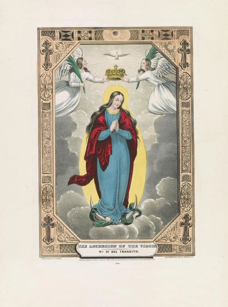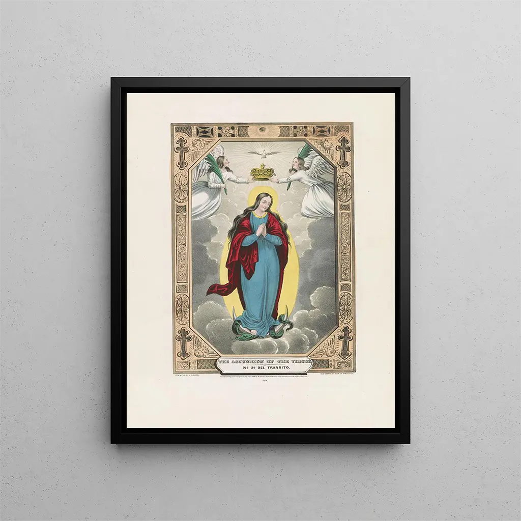 The Ascension of the Virgin is an iconic art print by Currier and Ives, a duo of 19th-century American artists renowned for their colorful lithographs capturing scenes of everyday life, historical events, and religious themes. This depiction of the Ascension fits into a context where lithography became a popular means of artistic dissemination, allowing a broad audience to enjoy artworks once reserved for the elite. In this scene, the Virgin Mary, surrounded by angels, is raised to heaven, symbolizing her central role in the Christian faith. The style of Currier and Ives, characterized by vivid colors and meticulous attention to detail, brings this sacred scene to life, while adding a touch of softness and serenity. The works of Currier and Ives continue to inspire contemporary interior decorators, who appreciate their ability to add a sense of nostalgia and spirituality to modern spaces. The art print of this piece on Artem Legrand will allow you to add a historically rich piece to your collection.