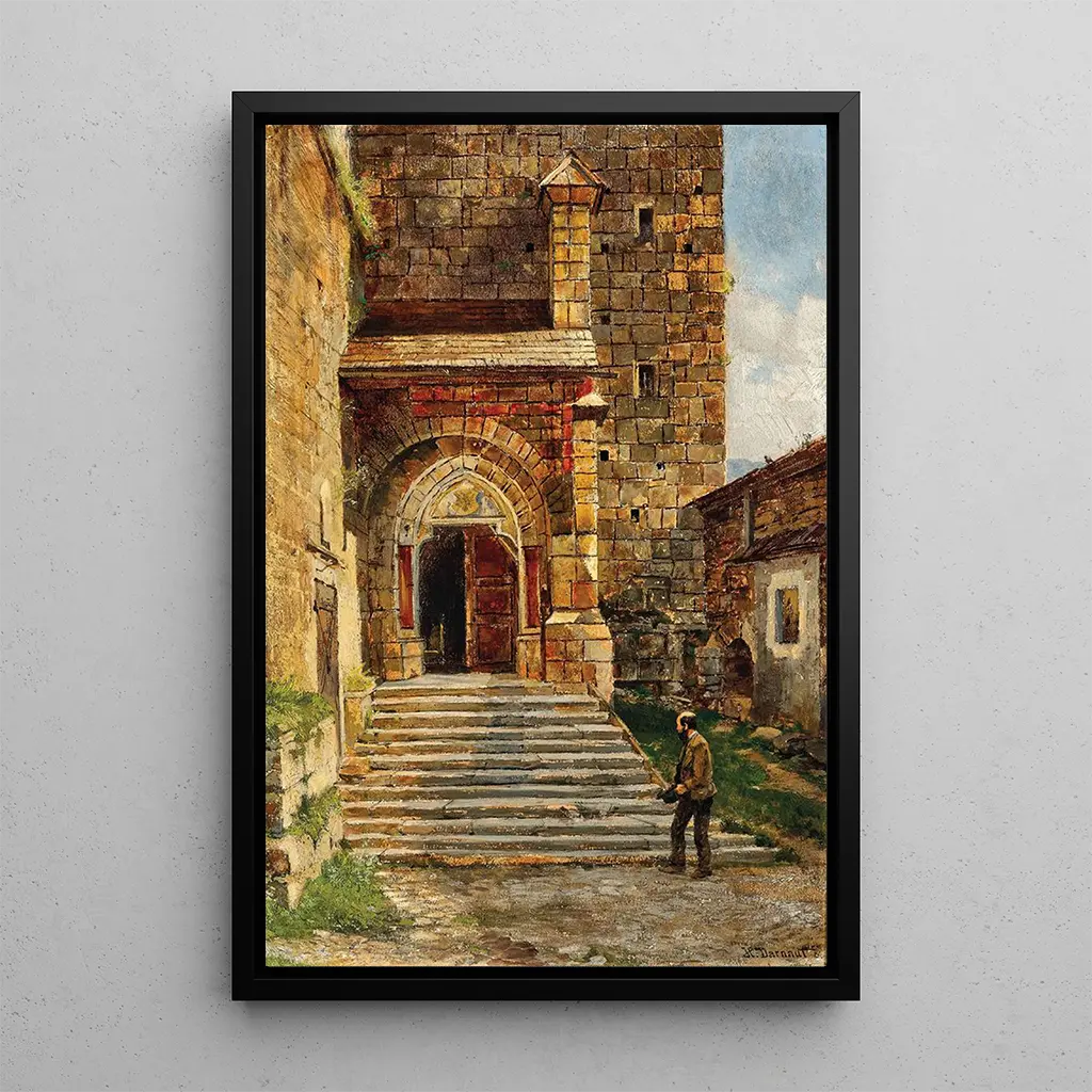Cette art print de Montée vers l'église à Eisenerz nous transporte dans un paysage montagnard empreint de tranquillité. Les couleurs douces et naturelles, allant des verts apaisants aux bruns chaleureux, créent une atmosphère de paix et de recueillement. La technique de peinture à l'huile de Darnaut permet de capturer la lumière du soleil filtrant à travers les arbres, illuminant le chemin qui mène à l'église. Ce tableau évoque une invitation à la contemplation, à la découverte d'un lieu où la nature et la spiritualité se rencontrent harmonieusement.