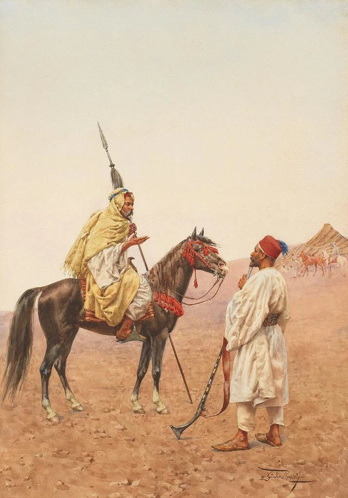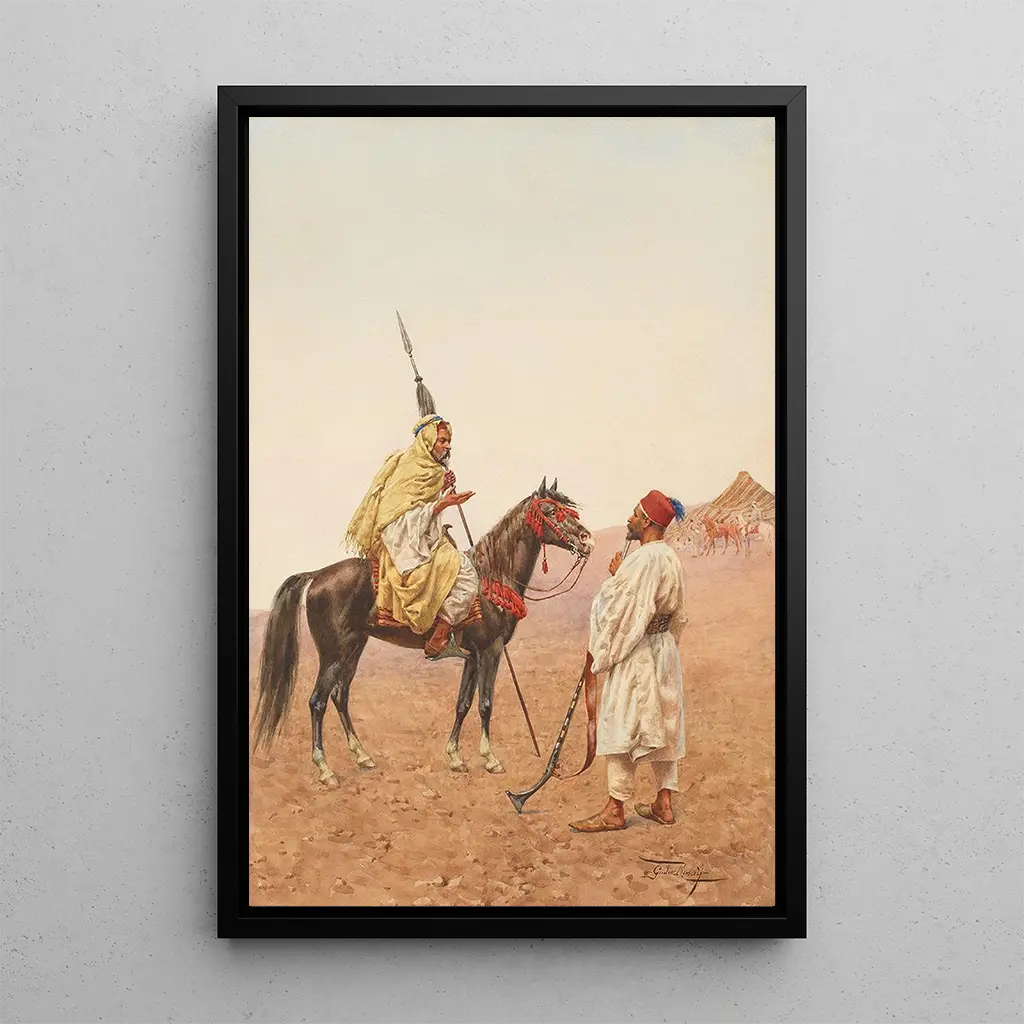 Ask for directions: a vibrant scene of life In this captivating artwork, "Ask for directions," Giulio Rosati immerses us in a lively scene where human interaction is highlighted. The warm, earthy colors, typical of the Orient, blend harmoniously to create a lively and welcoming atmosphere. Rosati's technique, which combines realism with impressionist touches, brings each character to life, making the composition dynamic and engaging. The meticulous details of the costumes and facial expressions testify to attentive observation of daily life, inviting the viewer to become involved in this quest for guidance. Giulio Rosati: a witness to Orientalism Giulio Rosati, an Italian painter of the 19th century, is renowned for his works that capture the essence of Orientalism. Influenced by his travels in North Africa and the Middle East, he was able to transcribe the beauty and exoticism of these regions through his art. Rosati worked during a period when Orientalism was at its peak, and his paintings reflect a fascination with Eastern cultures, often idealized by European artists. His work, rich in detail and color, contributed to shaping Western perceptions of these distant lands, making him a key figure in this artistic movement. A decorative acquisition with multiple assets The art print of "Ask for directions" is a decorative piece that will enhance any space, whether a living room, an office, or a bedroom. Its print quality and fidelity to the original artwork guarantee an exceptional aesthetic rendering, allowing appreciation of every nuance and detail. By integrating this art print into your decor, you add a touch of exoticism and culture to your interior, while sparking conversations about art and history. This art print is much more than simple decoration; it is an invitation to explore and dream.
