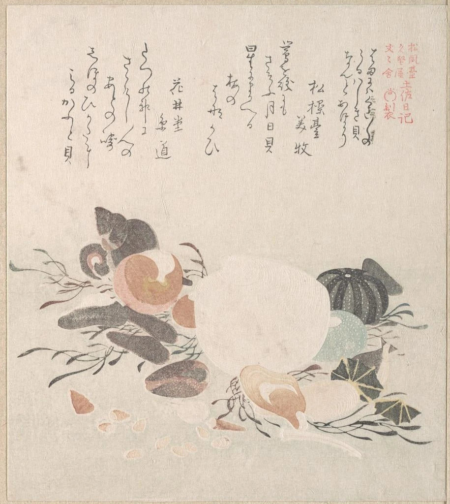Various shells with algae - Kubo Shunman Source: Divers coquillages avec algues - Kubo Shunman