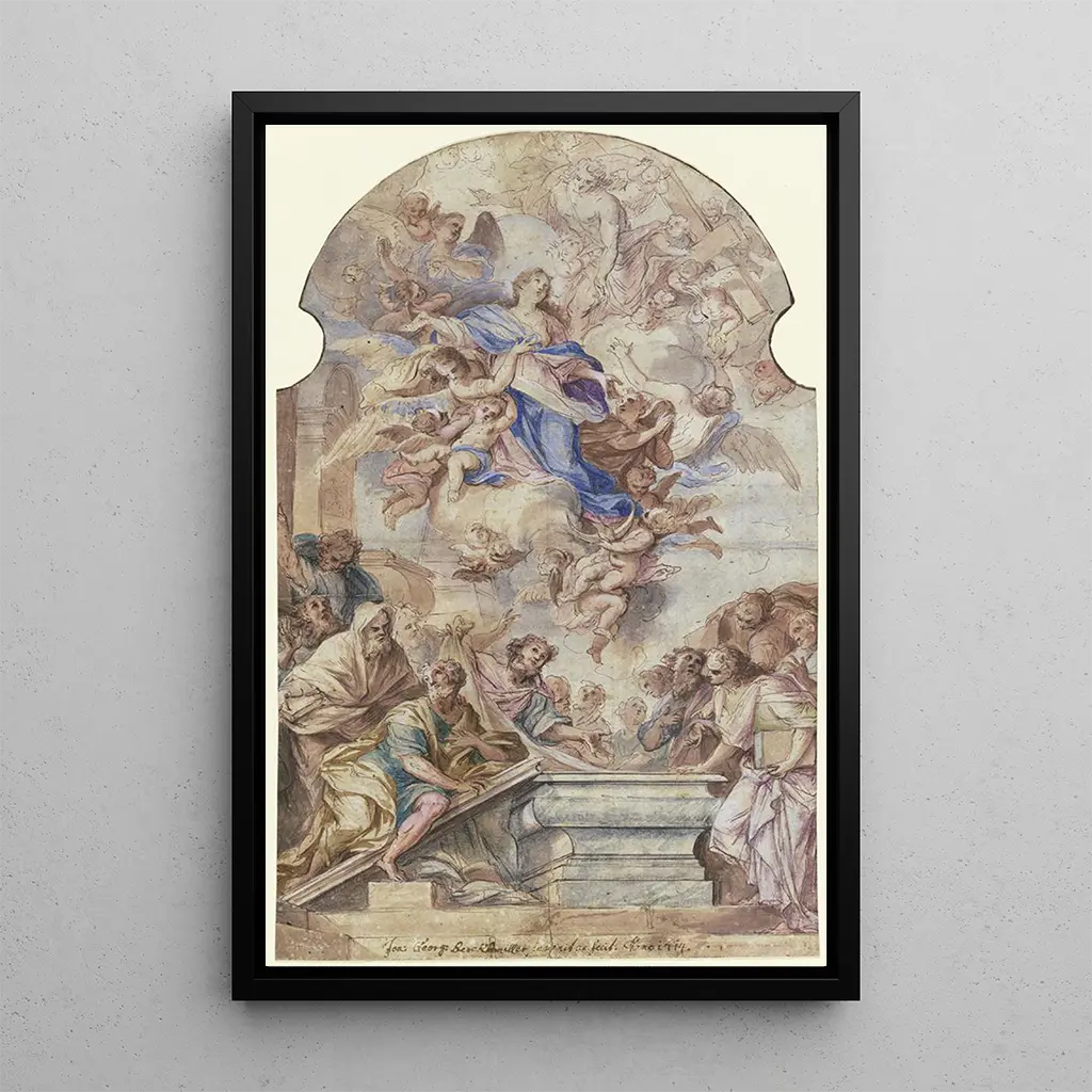 The reproduction of the Assumption of the Virgin is a decorative piece that will enhance any interior, whether a living room, office, or bedroom. Its faithful print quality and aesthetic appeal make it an ideal choice for those wishing to bring a touch of spirituality and elegance to their space. By choosing this art print, you are not only selecting a work of art but also an invitation to contemplation and serenity, transforming your environment into a place of peace and beauty.