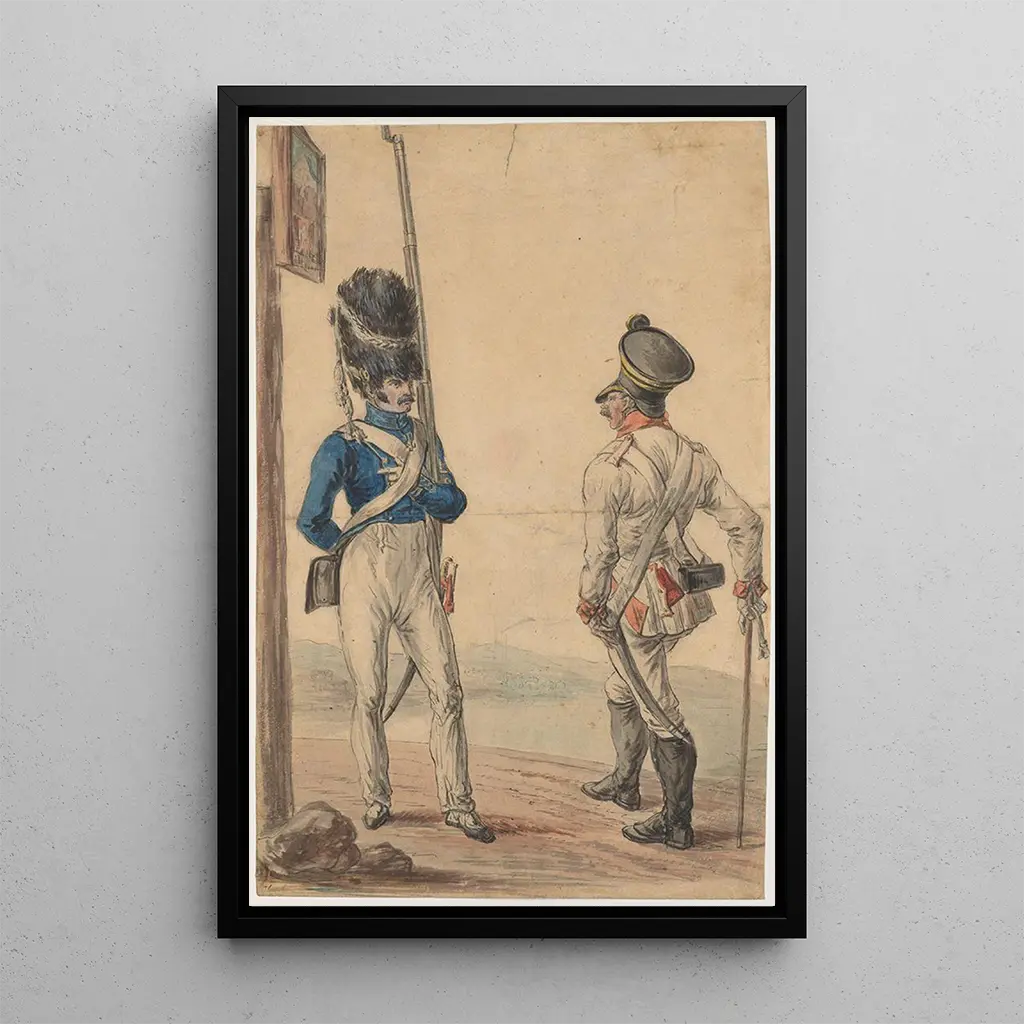 At the border post: a scene of tension and vigilance In "At the border post," Piotr Michałowski captures the essence of a moment filled with emotion and tension. The composition highlights alert soldiers, their faces marked by concentration and determination. The earthy colors, dominated by browns and greens, evoke the rugged and wild landscape surrounding them. Michałowski's technique, both precise and expressive, brings this scene to life, creating a palpable atmosphere of vigilance. Every detail, from the uniforms to the expressions of the characters, contributes to the intensity of the artwork, inviting the viewer to feel the gravity of the situation. Piotr Michałowski: a master of Polish realism Piotr Michałowski, a 19th-century painter, is renowned for his skill in depicting military scenes and portraits. Influenced by Romanticism and realism, he captured the daily life of his era with remarkable accuracy. Michałowski often drew inspiration from Polish history, seeking to immortalize moments of bravery and sacrifice. His work is emblematic of a period when national identity was being redefined, and "At the border post" is a perfect example, illustrating the challenges Poland faced at that time. A decorative art print with multiple virtues The art print "At the border post" is a decorative piece that will enhance any interior, whether in a living room, office, or bedroom. Its print quality and fidelity to the original details make this canvas an ideal choice for art and history enthusiasts. The aesthetic appeal of this work lies in its ability to tell a story, evoke emotions, and provoke reflection. By incorporating this art print into your decor, you bring not only an artistic touch but also a conversation piece that will captivate your guests.