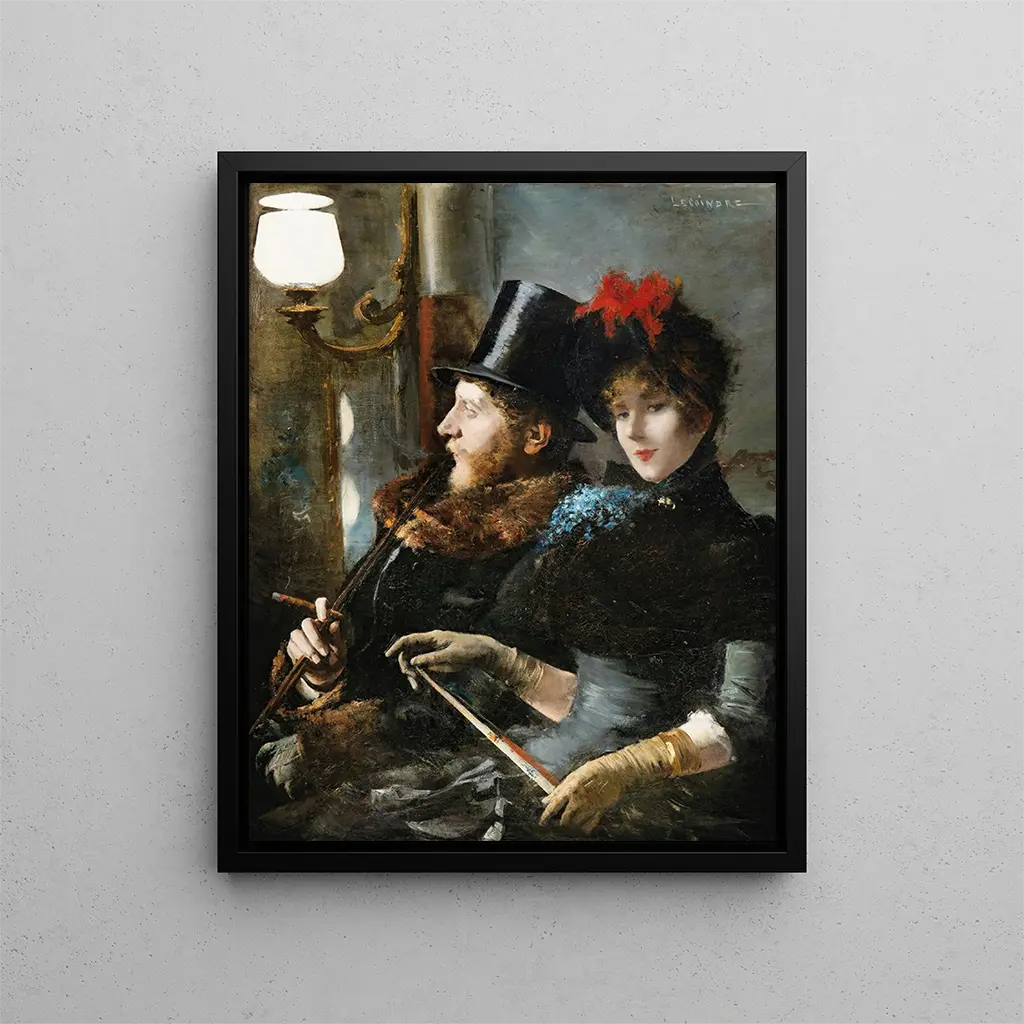 Art print of the Café-Concert - Étienne-François-Eugène Lecoindre – Captivating introduction In the vast panorama of 19th-century art, the work "Café-Concert" by Étienne-François-Eugène Lecoindre stands out for its vibrant atmosphere and penetrating gaze into Parisian life. This canvas, which captures the essence of cafés-concerts, these meeting and entertainment venues, immerses us in an era when popular culture was emerging strongly. The artist succeeds in immortalizing a scene of conviviality, where music and joie de vivre blend in delicate harmony. The art print of the Café-Concert - Étienne-François-Eugène Lecoindre allows us to relive this festive ambiance while offering a reflection on the social dynamics of its time. Style and uniqueness of the work The work is characterized by a palette of rich and warm colors that evoke the dimmed light of Parisian cafés. The characters, carefully arranged, seem to come to life under Lecoindre's brush, each carrying a story, an emotion. The artist's style, both realistic and imbued with romanticism, manages to capture not only physical features but also the soul of his subjects. The meticulous details, from costumes to facial expressions, testify to a deep respect for daily life. Furthermore, the dynamic composition, with lines guiding the eye through the scene, creates a sense of movement, almost dance, typical of the effervescence of cafés-concerts. It is this ability to fuse everyday life with refined aesthetics that gives this work its singularity. The artist and his influence Étienne-François-Eugène Lecoindre, although less known than some of his contemporaries, managed to establish himself as a keen observer of society of his time. Trained in the Parisian artistic scene, he was influenced by movements such as realism and romanticism, while developing a personal style that is uniquely his own. His ability to translate scenes of popular life with such emotional intensity left a mark on his contemporaries, and his legacy endures in the appreciation of artists seeking to capture the soul of urban life.