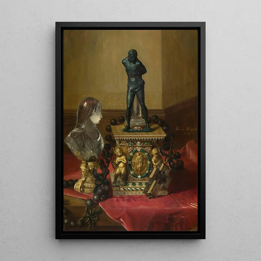At the Louvre: a tribute to everyday beauty The art print At the Louvre by Blaise-Alexandre Desgoffe immerses us in a universe where beauty is hidden in the details of daily life. This captivating piece stands out for its harmonious composition, where everyday objects are highlighted with remarkable delicacy. The warm and rich colors, ranging from deep browns to dazzling golds, create an atmosphere that is both intimate and inviting. The oil painting technique, mastered by Desgoffe, allows each texture to be rendered with striking precision, inviting the viewer to appreciate the beauty of simple things. This painting is a true ode to contemplation, where each element tells a story. Blaise-Alexandre Desgoffe: a master of realism in the 19th century Blaise-Alexandre Desgoffe, active in the 19th century, is recognized for his exceptional talent in the field of still life. Influenced by the great masters of Dutch painting, he developed a unique style that combines realism and poetry. His work reflects an era when art turned toward faithful representation of reality, while maintaining artistic sensitivity. Desgoffe captured the essence of his time, making his paintings valuable testimonies of everyday life. His ability to transform ordinary objects into subjects of great beauty highlights his importance in the artistic landscape of his era. A decorative acquisition with multiple advantages The art print At the Louvre is a decorative piece that will enhance any space, whether a living room, office, or bedroom. Its print quality guarantees remarkable fidelity to the original work, allowing you to enjoy every detail with impressive clarity. The aesthetic appeal of this canvas lies in its ability to add a touch of elegance and sophistication to your interior. By choosing this art print, you opt for a piece that not only beautifies your decor but also evokes reflection on the beauty of everyday objects, making each glance at this artwork a rewarding experience.