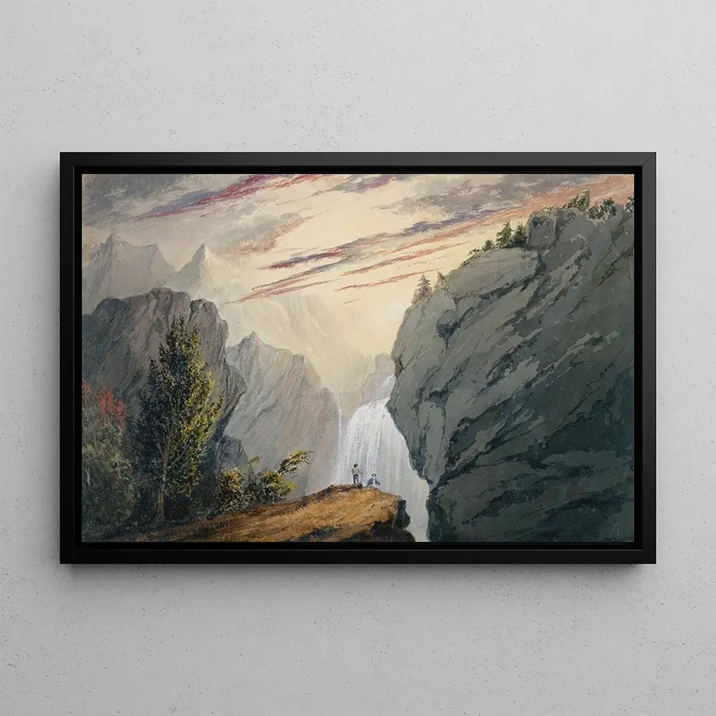 At the Waterfall: a breath of wild nature The art print At the Waterfall by David Claypoole Johnston immerses us in a natural landscape where water gushes forth with power and beauty. The shades of blue and green blend to create a lively scene, where light plays on the tumultuous waters. Johnston's technique, which combines realism and romanticism, gives an almost poetic dimension to this work. Every detail, from the rocks to the foliage, is rendered with precision that invites escape and contemplation of nature's grandeur. David Claypoole Johnston: an artist at the heart of American romanticism David Claypoole Johnston, active in the 19th century, is recognized for his evocative landscapes and romantic style. Influenced by the great European masters, he developed a unique approach that celebrates the beauty of American scenery. His works reflect a deep admiration for nature, often staged in dynamic and moving compositions. Although less famous than some of his contemporaries, Johnston played an important role in the evolution of landscape art in the United States, and his art prints continue to inspire art enthusiasts. A decorative acquisition with multiple assets The art print At the Waterfall is a perfect addition to your interior decor, whether in a living room, office, or bedroom. Its print quality ensures exceptional fidelity to the vibrant colors and details of the original work, bringing a touch of wild nature to your space. This piece evokes a feeling of freedom and escape, ideal for creating a soothing atmosphere. With its aesthetic appeal and visual impact, this canvas will captivate your guests' attention and enrich your living environment.
