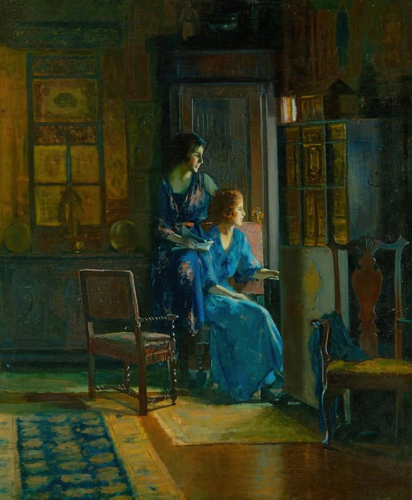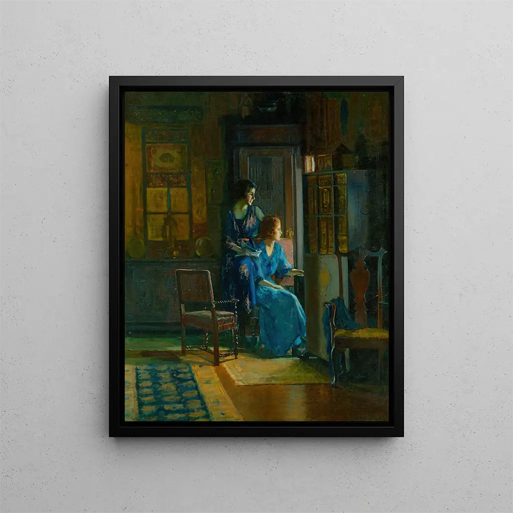 Francis Coates Jones's artwork "À la fenêtre" is set at a pivotal moment in American art history, where light and domestic intimacy converge in a delicate harmony. This painting, capturing a serene interior scene, invites viewers to a silent contemplation. The composition evokes a dreamlike atmosphere, where the interplay of shadows and light blends with gentle colors, offering a glimpse into everyday life at the end of the 19th century. Exploring this piece reveals not only a visual masterpiece but also an open window into the soul of its era. Style and uniqueness of the artwork Through "À la fenêtre," Francis Coates Jones demonstrates remarkable mastery of chiaroscuro, a technique that gives his painting emotional depth. The nuances of light filtering through the window create a striking contrast with the shadows enveloping the female figure, emphasizing her isolation and reflection. The woman, absorbed in her thoughts, becomes a symbol of melancholy and introspection, reinforced by the softness of the pastel tones used. The meticulous attention to textures, from the drapes of the dress to the details of the furniture, reflects his concern for realism and his desire to capture the fleeting beauty of the moment. This painting transcends a simple portrait to become a true psychological study, where each element contributes to the visual narrative. The artist and his influence Francis Coates Jones, born in 1857, was influenced by the artistic movements of his time, notably realism and impressionism. Trained at the Pennsylvania Academy of the Fine Arts, he mastered the techniques of his predecessors while developing a personal style unique to him. His interest in scenes of daily life and portraits of women demonstrates a particular sensitivity towards the female world and its nuances. Jones was also an active member of the artistic community, participating in numerous exhibitions and contributing to the evolution of American art. His work continues to inspire many contemporary artists, who see in him a pioneer in the representation of human emotions.