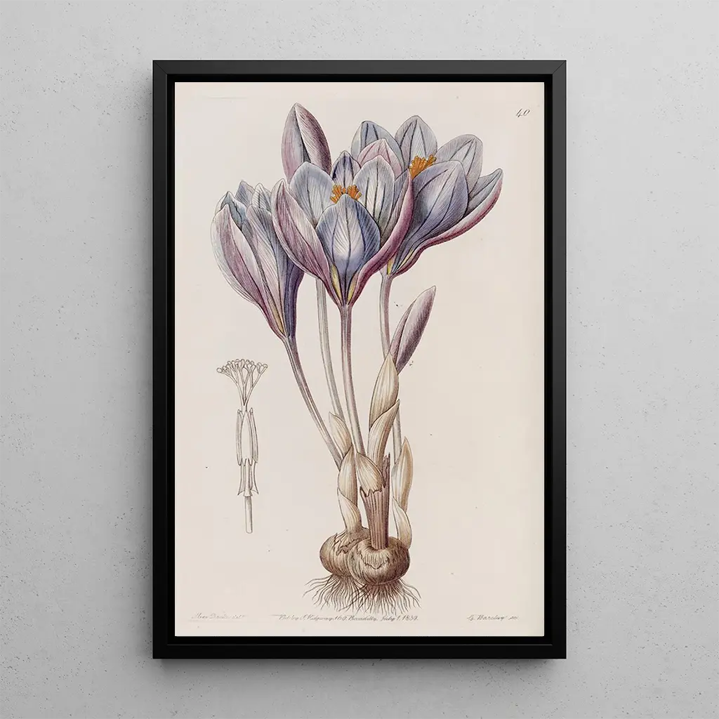 The reproduction of the Autumn Crocus in Bloom is an ideal choice to enhance your living space. Whether in a living room, office, or bedroom, this art print adds a touch of color and serenity. Its printing quality ensures fidelity to the nuances and details of the original work, while offering undeniable aesthetic appeal. This art print becomes a focal point of your decor, inspiring admiration from your guests and creating a warm atmosphere. By choosing this canvas, you invite the beauty of nature into your daily life, while celebrating the art of Sydenham Edwards.