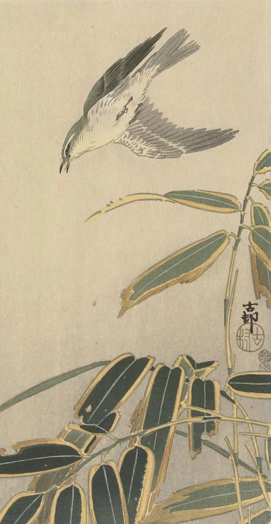 Art print | Traquet avec bambou - Ohara Koson