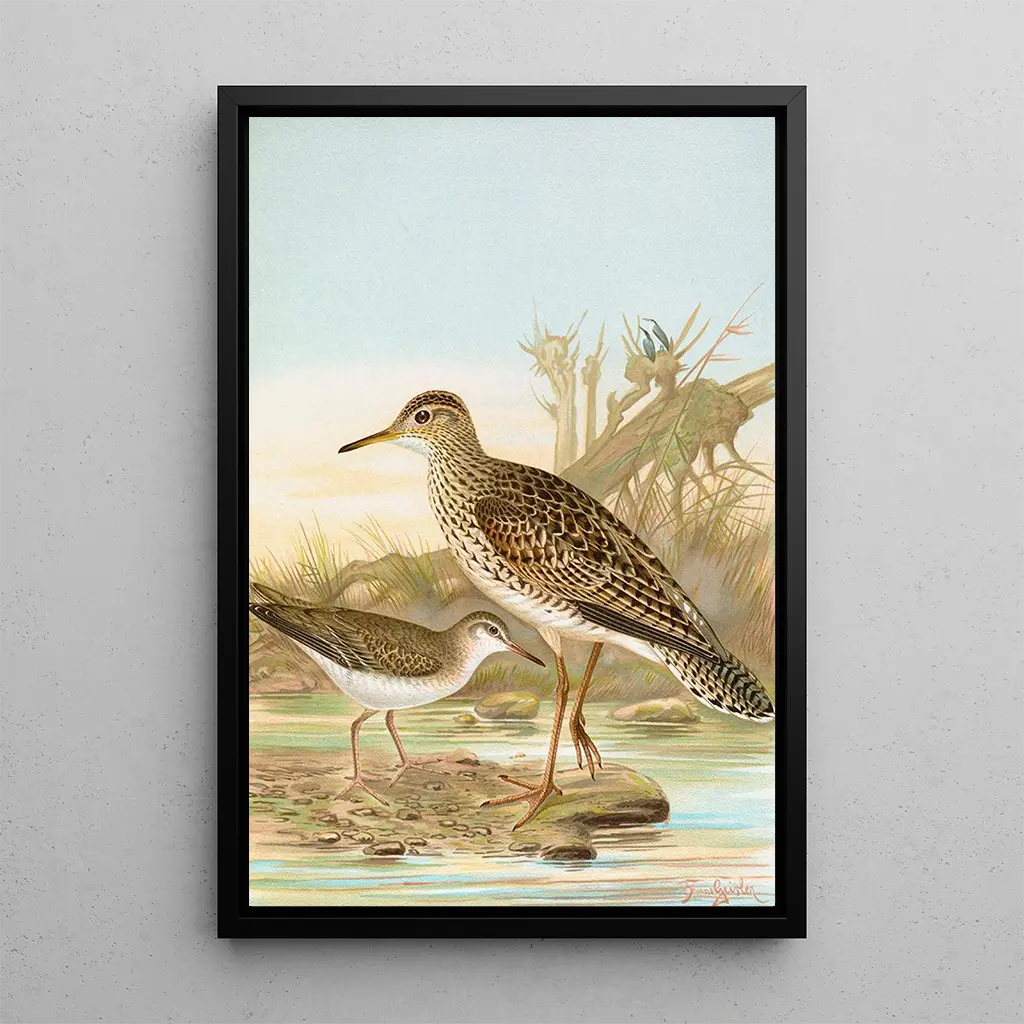 Bartramia longicauda Tringoides macularius: an art print of a vibrant natural scene The art print of Bartramia longicauda Tringoides macularius evokes a lively scene from nature, where shades of green and blue blend harmoniously. The watercolor technique used by the artist captures the lightness of the plumage and the delicacy of the forms. Every detail, from the feathers to the reflections on the water, helps create a calming and contemplative atmosphere. This artwork invites immersion into a world where the beauty of wildlife is highlighted, paying tribute to the richness of biodiversity. Johann Friedrich Naumann: a pioneer of artistic ornithology Johann Friedrich Naumann, a 19th-century naturalist and artist, masterfully combined science and art in his works. Influenced by the discoveries of his time, he dedicated his career to the study of birds, becoming an iconic figure in ornithology. His illustrations, both precise and aesthetic, reflect his commitment to nature and his desire to raise public awareness about species conservation. The Romantic period, during which he evolved, also nourished his style, blending meticulous observation with artistic expression. A decorative acquisition with multiple advantages The art print of Bartramia longicauda Tringoides macularius is an ideal decorative choice to enhance a living room, office, or bedroom. Its print quality and fidelity to the original colors make it a captivating piece of art that draws the eye. By incorporating this artwork into your interior, you bring a touch of nature and serenity, while enriching your decor. Its aesthetic appeal and message about wildlife preservation make it a both beautiful and meaningful element.