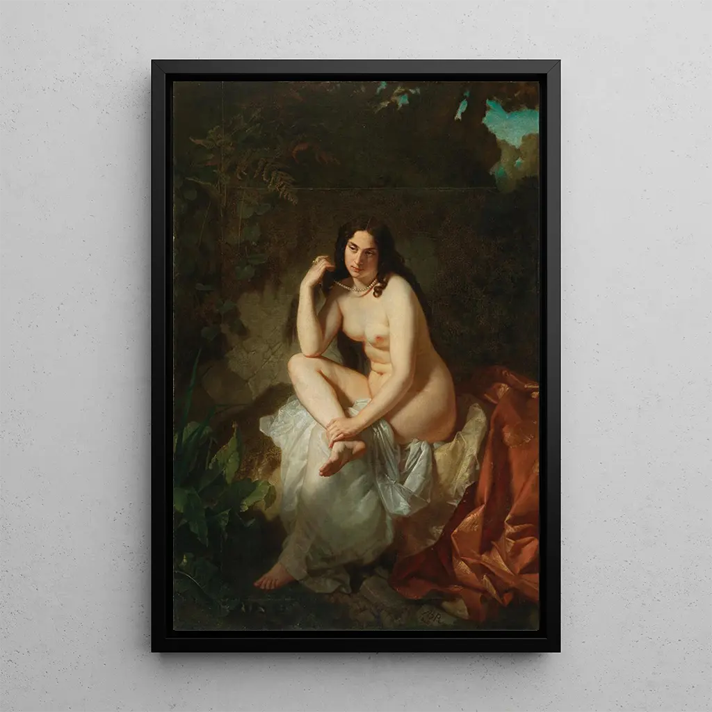 Baigneurs : an ode to summer relaxation The art print "Baigneurs" transports us to the heart of a summer scene filled with serenity and joy of living. This artwork highlights human figures lounging by the water, capturing the very essence of simple summer pleasures. The vibrant colors, ranging from deep blues to bright greens, create a refreshing and invigorating atmosphere. The technique used by the artist, skillfully blending realism and impressionism, brings this scene to life, where light plays a predominant role, illuminating the faces and bodies of the bathers. Every detail, from water splashes to the laughter of the characters, evokes a sense of happiness and freedom. Monogrammist AB: an artistic mystery of the 17th century The monogrammist AB, whose identity remains largely unknown, is a 17th-century artist whose works demonstrate great technical mastery and a particular sensitivity. Active during a time when the Baroque style dominated European art, this artist captured moments of everyday life with a unique approach. Influences of Flemish and Italian painting are evident in his compositions, where light and shadow play a crucial role. Although little information is available about his biography, his works, such as "Baigneurs," continue to intrigue and fascinate art enthusiasts, reflecting a rich era of creativity and innovation. A decorative acquisition with multiple advantages Choosing the reproduction of "Baigneurs" is a wise decision to enhance your interior decor. Whether in a living space, an office, or a bedroom, this canvas adds a touch of freshness and lightness to your environment. Its printing quality ensures perfect fidelity to the nuances and details of the original artwork, while offering undeniable aesthetic appeal. By integrating this reproduction into your decor, you create a welcoming and inspiring space, where every glance at this summer scene evokes memories of relaxation and pleasure by the water.