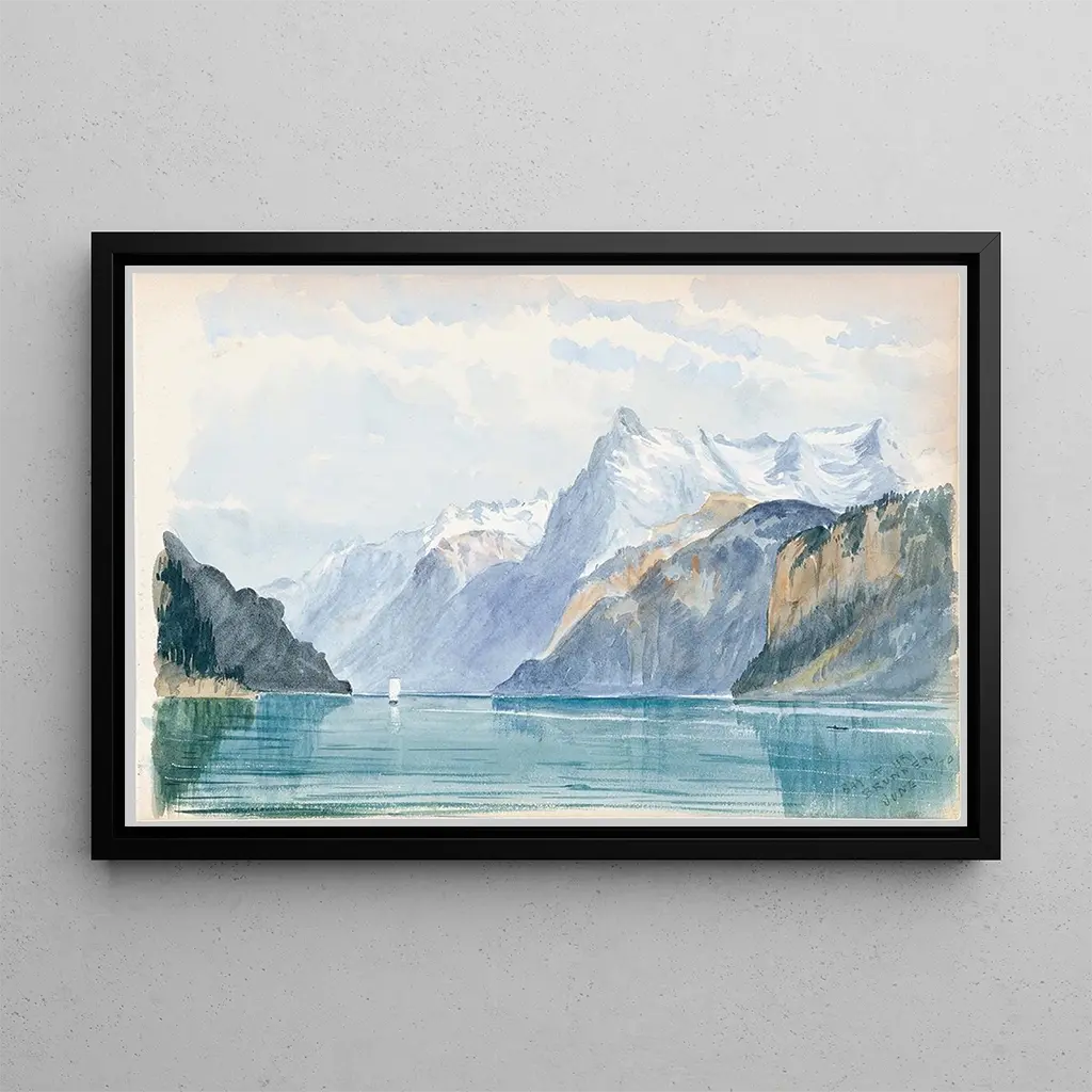 Uri Bay Brunnen: A captivating panorama in the heart of the Swiss Alps. The art print "Uri Bay Brunnen" depicts a majestic landscape, where the mountains are reflected in the crystal-clear waters of the lake. The shades of blue and green blend harmoniously, creating a serene and calming atmosphere. The oil on canvas technique allows for capturing natural light, highlighting the details of the Alpine peaks and the softness of the clouds. This art print invites visual escape, transporting the viewer to a corner of preserved nature, where each brushstroke evokes tranquility and the grandeur of Swiss landscapes. Bay of Uri Brunnen: a master of romantic painting. The artist behind "Uri Bay Brunnen" is a representative of the Romantic school, an artistic movement that emerged in the early 19th century. This movement is characterized by an exaltation of nature and human emotions, often inspired by grand landscapes. The artist was influenced by the great masters of his time, seeking to capture the essence of natural beauty. His career spans several decades, during which he evolved while remaining faithful to his Romantic roots, thus leaving his mark in art history. A decorative acquisition with multiple assets. The art print of "Uri Bay Brunnen" fits perfectly into various living spaces, whether it is a living room, an office, or a bedroom. Its print quality guarantees fidelity to the colors and details of the original work, offering undeniable aesthetic appeal. This art print, through its representation of nature, brings a touch of serenity and elegance to your interior decor. By choosing this art print, you opt for a piece that not only enhances your space but also evokes deep emotions and a connection with the beauty of the natural world.
