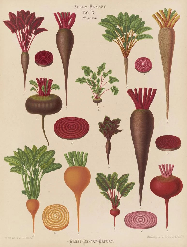 Betteraves Art print - Ernst Benary – Captivating introduction The work "Betteraves" by Ernst Benary is a true ode to nature, a painting that transcends the simple botanical motif to offer a unique sensory experience. Immersing oneself in this painting, the viewer is immediately enveloped by the richness of colors and the delicacy of forms. The beets, depicted with remarkable precision, seem almost to vibrate on the canvas, inviting prolonged contemplation. This Betteraves - Ernst Benary art print allows rediscovering a masterpiece that, although rooted in everyday life, rises to the level of art thanks to the vision of its creator. Style and uniqueness of the work Ernst Benary's style is distinguished by its naturalistic approach, where every detail is carefully observed and reproduced. In "Betteraves," the shades of red and purple blend harmoniously, creating an atmosphere that is both warm and lively. The artist manages to capture the very essence of these vegetables, not only through their appearance but also through their texture, almost tangible. Shadows and lights play a crucial role in the composition, adding depth and highlighting the intrinsic beauty of these roots. Benary succeeds in transforming an ordinary subject into a celebration of life, revealing the hidden poetry in nature. This work is an invitation to appreciate the beauty of simple things, to see beyond the ordinary, and to marvel at the complexity of plant life. The artist and his influence Ernst Benary, known for his commitment to faithful representation of nature, managed to leave his mark on his era with his undeniable talent. Prolific artist, he established himself in the artistic world thanks to his ability to combine technique and sensitivity. His work is not limited to a simple representation; it reflects a philosophy that values the natural world and invites reflection on our relationship with it. Influenced by the artistic movements of his time, Benary was able to incorporate elements of realism while developing a personal style, characterized by meticulous attention to detail. His legacy endures, inspiring many contemporary artists who seek to explore themes of nature and representation. A wall decoration