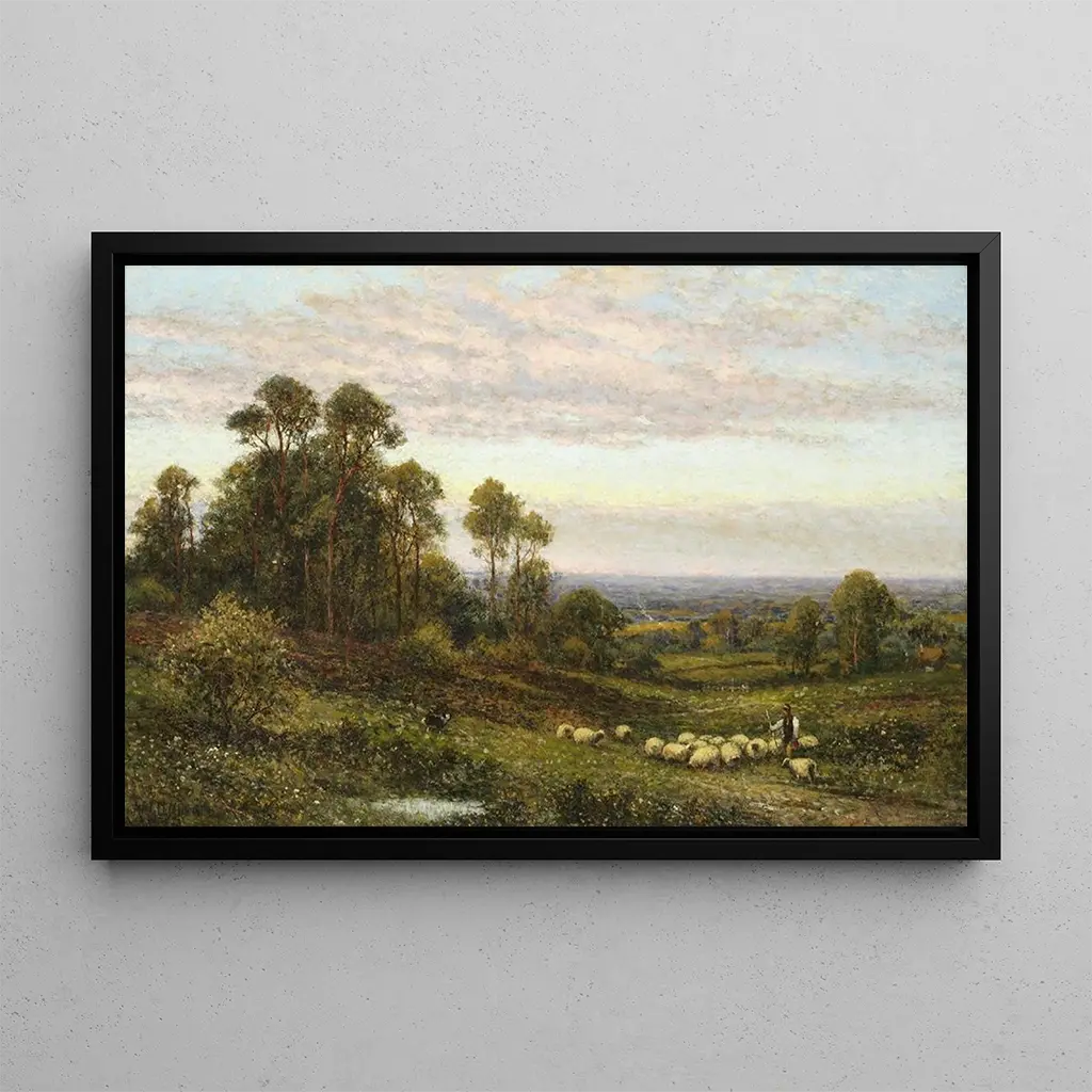 This art print of "Berger et son troupeau" is a perfect choice to enhance your interior. Whether in a bedroom, office, or living room, this canvas will add a touch of serenity and nature to your decor. The quality of the print guarantees remarkable fidelity to the colors and details of the original work, allowing full appreciation of Alfred Augustus Glendening's talent. With its aesthetic appeal and soothing atmosphere, this art print is much more than a simple decorative element; it invites dreaming and contemplation of the simple beauties of rural life.