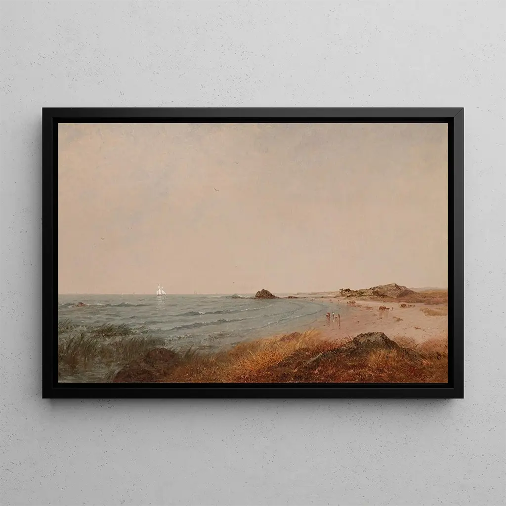 Beverly Beach, Massachusetts: an art print of light and movement "Beverly Beach, Massachusetts" is an artwork that captures the very essence of a sunny day by the water. John Frederick Kensett, with his mastery of colors and light, offers us a vibrant scene where the waves gently caress the shoreline. The shades of blue and sand intertwine, creating a striking contrast that evokes summer warmth. Kensett's technique, characterized by delicate brushstrokes, brings this lively beach scene to life, where bathers and sailboats add a dynamic dimension to the overall composition. John Frederick Kensett: a pioneer of American landscape art print John Frederick Kensett, born in 1816, is recognized as one of the leading representatives of the Hudson River School, an artistic movement that celebrated American landscapes. Influenced by Europe, Kensett successfully integrated elements of Romantic painting while highlighting the natural beauty of the United States. His work was essential in establishing a tradition of landscape art print that values light and atmosphere. Kensett was also an active member of the National Academy of Design, contributing to the development of American art in the 19th century. A decorative art print with multiple virtues The art print of "Beverly Beach, Massachusetts" is a perfect piece to enhance your interior, whether it is a living room, office, or bedroom. Its printing quality ensures remarkable fidelity to the details and colors of the original artwork, bringing a summery and joyful atmosphere to your space. This art print, with its aesthetic appeal, harmoniously fits into various decorating styles, from classic to modern, while inviting daydreaming and escapism.