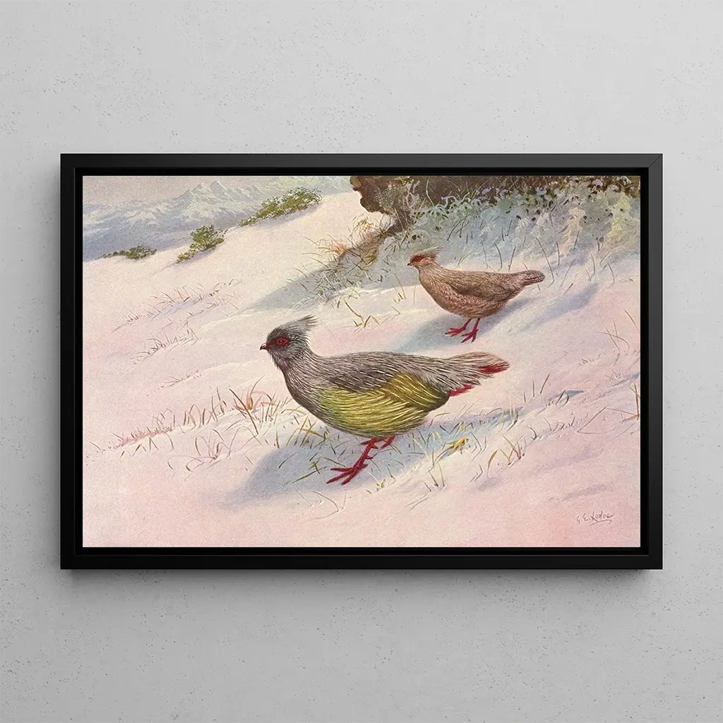 The art print of the Perdrix sanglante by Geoffroy, created by George Edward Lodge, evokes the raw beauty of wildlife. This canvas, rich in detail, captures the vibrant plumage of the bird, with shades of red and brown blending harmoniously. The watercolor technique, used with mastery, brings each feather to life, creating a vibrant and dynamic atmosphere. Lodge, a true naturalist, manages to convey the energy of the scene, inviting the viewer to immerse themselves in the wild universe where this majestic bird lives.