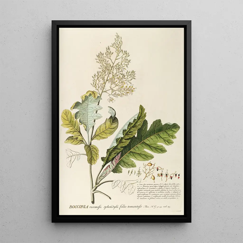Bocconia: an ode to lush nature The art print of Bocconia, a work by Georg Dionysius Ehret, immerses us in a fascinating botanical universe. The vibrant shades of green and yellow blend harmoniously, evoking the richness of tropical flora. The gouache technique, used with mastery, captures the delicate details of the leaves and flowers, creating an atmosphere that is both lively and soothing. Each element of the composition seems to dance under the light, inviting the viewer to a deep contemplation of natural beauty. Georg Dionysius Ehret: a pioneer of botanical illustration Georg Dionysius Ehret, active in the 18th century, is recognized as one of the greatest botanical illustrators of his time. Originally from Germany, he was influenced by the scientific discoveries of his era, particularly in the field of botany. His works, such as this art print of Bocconia, demonstrate his attention to detail and his passion for nature. Ehret collaborated with renowned botanists, which helped disseminate his illustrations within scientific and artistic circles. His baroque style, rich in colors and details, marked an era where art and science converged. A decorative acquisition with multiple assets The art print of Bocconia is an ideal decorative piece to enhance your interior, whether in a living room, office, or bedroom. Its print quality and fidelity to the original work make it a perfect choice for art and botany enthusiasts. With its undeniable aesthetic appeal, this canvas brings a touch of freshness and serenity to any space. Offering a window into the beauty of nature, it will delight your guests and enrich your decor with elegance.