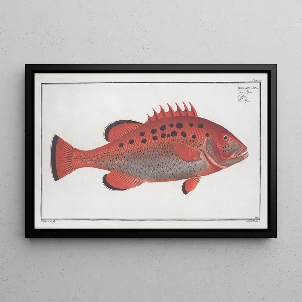 The art print of Bodianus apua is much more than a simple artwork; it is a decorative element that fits into various living spaces. Whether in a modern living room, an inspiring office, or a calming bedroom, this canvas adds a touch of elegance and serenity. Its printing quality guarantees remarkable fidelity to the colors and details of the original, making each glance a moment of contemplation. The aesthetic appeal of this reproduction makes it an ideal choice for those wishing to enrich their interior with a piece that evokes the natural beauty of the oceans.