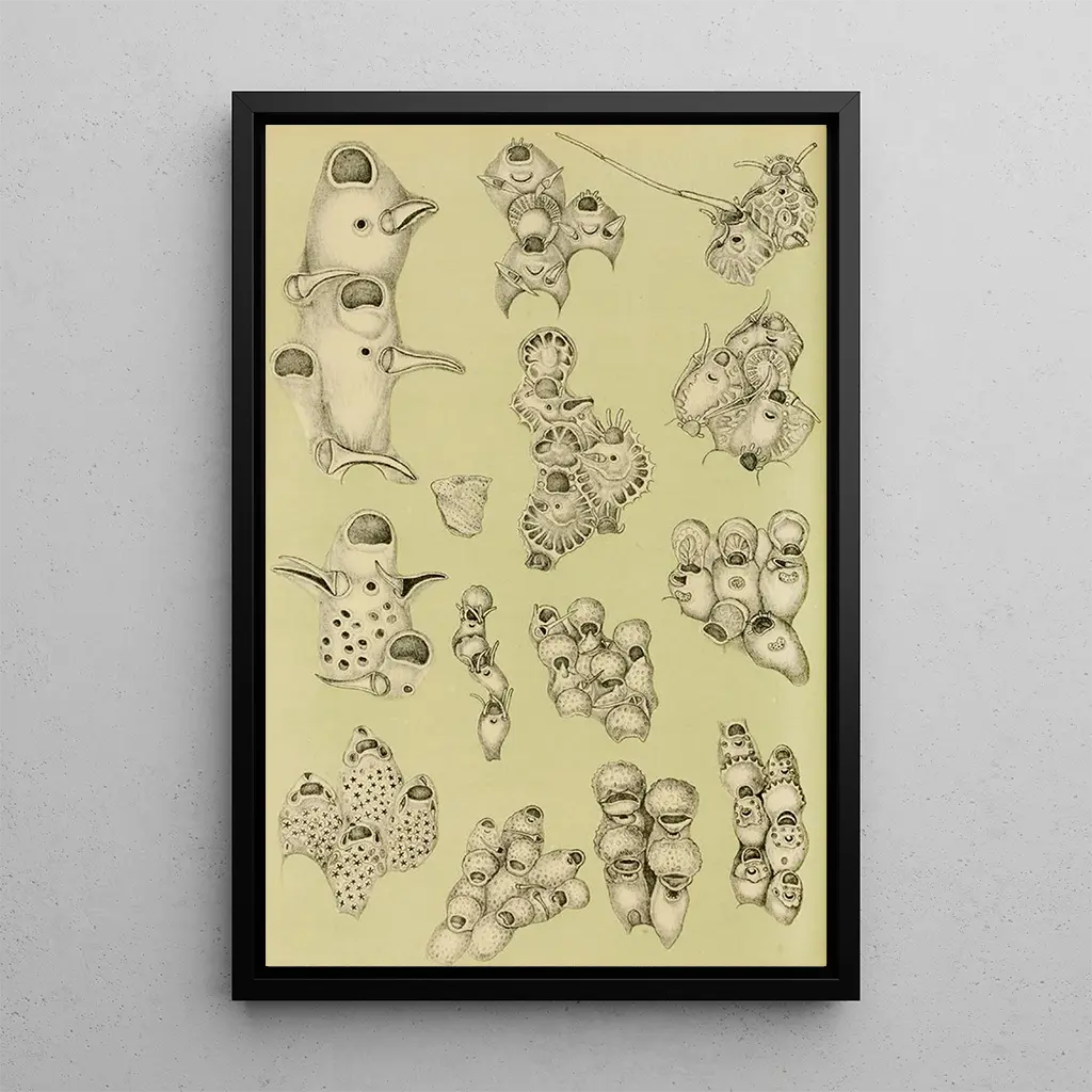 Frederick McCoy, born in 1817, is renowned for his contributions to paleontology and naturalist art. Based in Australia, he dedicated his life to studying marine organisms, notably bryozoans, which he depicted with remarkable precision. Influenced by the naturalist movement, McCoy sought to combine scientific rigor and aesthetic appeal in his works. Bryozoaires VIII reflects this approach, demonstrating his commitment to raising awareness of the beauty and fragility of marine ecosystems.