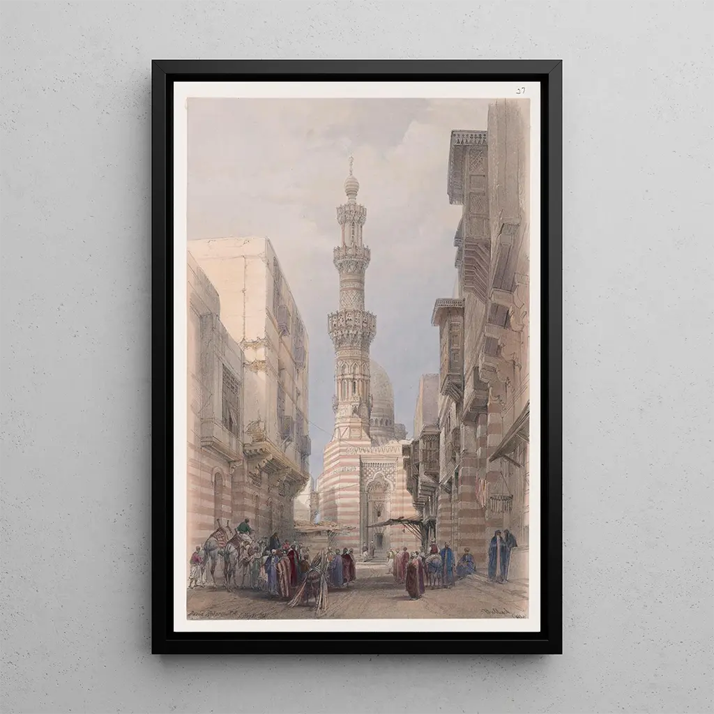David Roberts, figure emblématique de l'orientalisme au XIXe siècle, a su immortaliser des scènes de la vie quotidienne en Égypte et au Moyen-Orient. Son parcours artistique est marqué par des voyages qui lui ont permis de s'imprégner des cultures qu'il a rencontrées. Influencé par le romantisme, il a développé un style unique, alliant précision et sensibilité. "Bullack Le Caire" est l'une de ses œuvres les plus représentatives, témoignant de son talent à capturer non seulement des paysages, mais aussi des moments de vie authentiques, faisant de lui un précurseur dans la représentation de l'Orient.