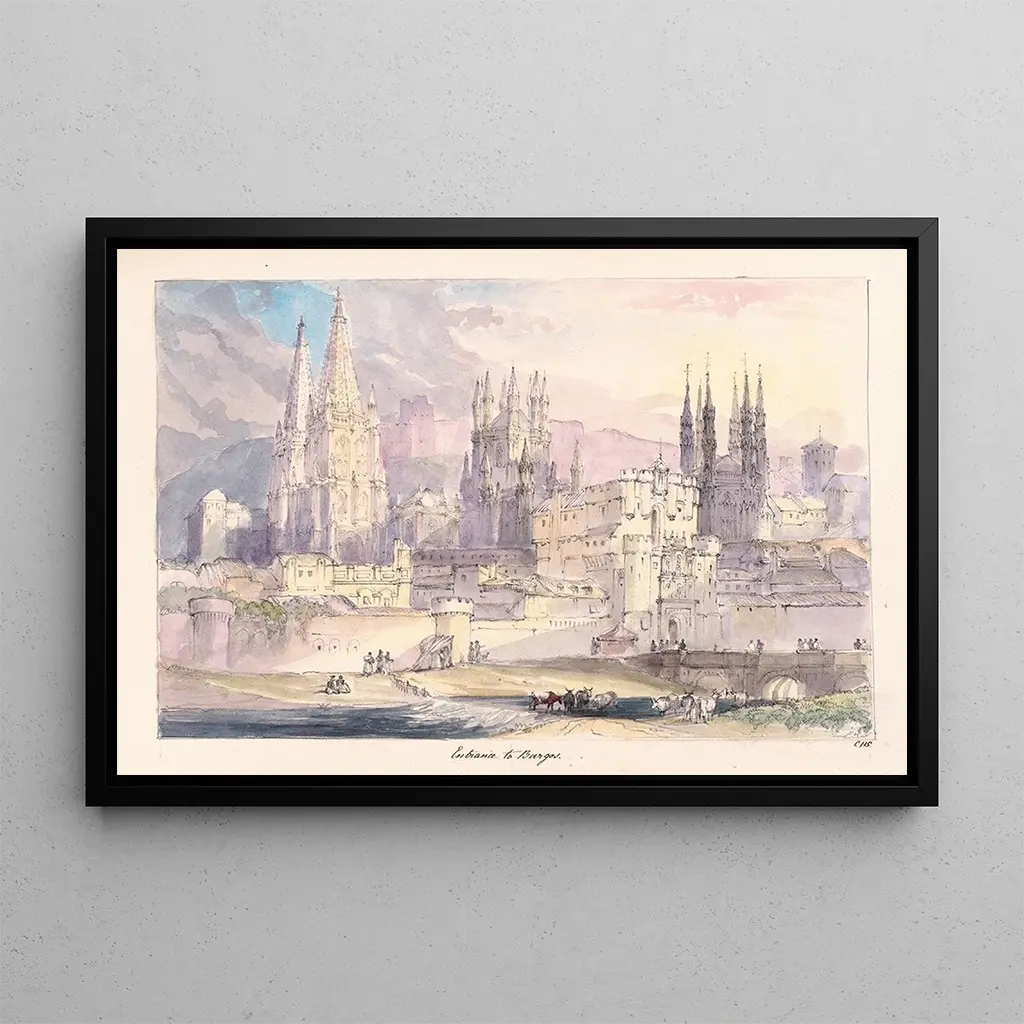Burgos Entry: A Serene Historical Scene The artwork "Burgos Entry" by Charles Hamilton Smith depicts a captivating scene where history and nature meet. The soft colors and meticulous details evoke a peaceful, almost contemplative atmosphere. The composition highlights a majestic entrance, surrounded by lush landscapes and cloudy skies, creating a harmonious balance between architecture and the natural world. Smith's technique, which combines watercolor and drawing, captures light in a way that brings each element of the canvas to life. This art print invites the viewer to immerse themselves in a moment of tranquility, while also evoking the grandeur of a bygone era. Charles Hamilton Smith: A Witness of His Time Charles Hamilton Smith, active in the early 19th century, is renowned for his works that blend art and historical documentation. Influenced by the Romantic movement, he skillfully captured scenes of daily life and landscapes with remarkable precision. His career led him to explore various subjects, ranging from landscapes to portraits, with a particular interest in architecture. Smith was also a prolific illustrator, contributing to works on natural history and archaeology. His artistic approach, which combines realism and sensitivity, makes him an important figure of his era, offering a unique vision of British art. A Decorative Acquisition with Many Advantages The art print of "Burgos Entry" is a decorative piece that fits perfectly into various spaces, whether a living room, office, or bedroom. Its printing quality guarantees fidelity to the original details, allowing you to enjoy the artwork in all its splendor. With its soothing tones and serene ambiance, this art print adds a touch of elegance and culture to your interior. The aesthetic appeal of this canvas makes it an ideal choice for those looking to enhance their decor while celebrating the artistic heritage of Charles Hamilton Smith.