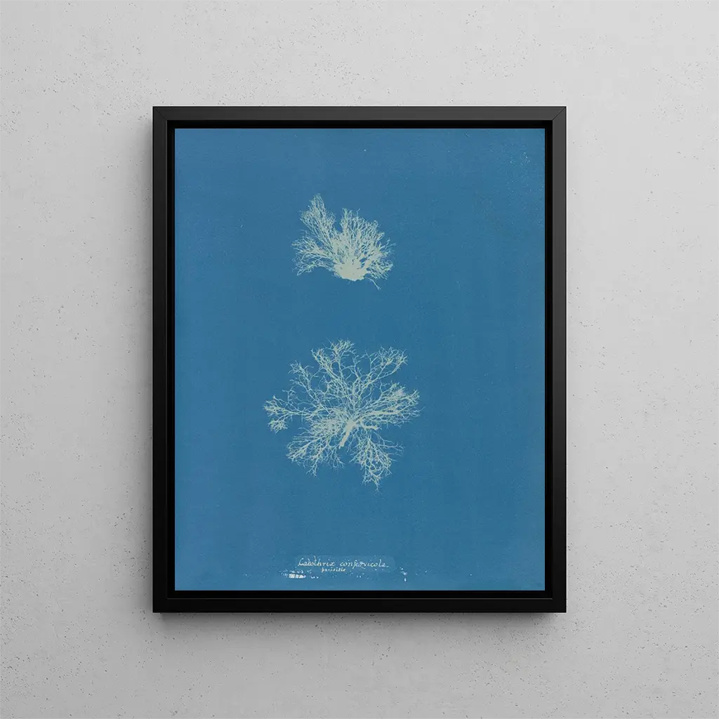 In the fascinating world of botanical photography, the artwork "Calothrix confervicola" by Anna Atkins stands out for its innovative and poetic approach. Created in the 19th century, this iconic piece embodies not only the aesthetics of its time but also the artist's passion for nature. Through this art print, viewers are invited to immerse themselves in a universe where science and art meet, revealing the intrinsic beauty of flora. The image of this algae, captured with meticulous precision, evokes a delicacy and lightness that transcend mere scientific documentation, transforming observation into an immersive visual experience. Style and uniqueness of the work The uniqueness of "Calothrix confervicola" lies in its bold use of the cyanotype technique, a method that allows for creating deep blue impressions. This technique, both rudimentary and sophisticated, gives the artwork a unique atmosphere, where each shade of blue interacts with the texture of the algae. Anna Atkins, as a pioneer of photography, manages to capture not only the physical appearance of her subject but also its essence. The delicate shapes and minute details of this algae are highlighted, creating harmony between the natural subject and the artistic process. This subtle balance between science and aesthetics makes this work a perfect example of botanical art, where each art print becomes a tribute to the beauty of nature. The artist and her influence Anna Atkins, often considered the first female photographer, managed to mark her era with her innovative approach and commitment to botany. A student of the illustrious botanist John Lindley, she combined her scientific knowledge with her passion for art. Her work not only paved the way for new forms of artistic expression but also contributed to the recognition of photography as a legitimate means of scientific documentation. Through her works, Atkins inspires generations of artists and scientists, proving that beauty can emerge from the rigorous observation of nature. Her legacy endures today, reminding us of the importance of the interconnection between art and science in our understanding