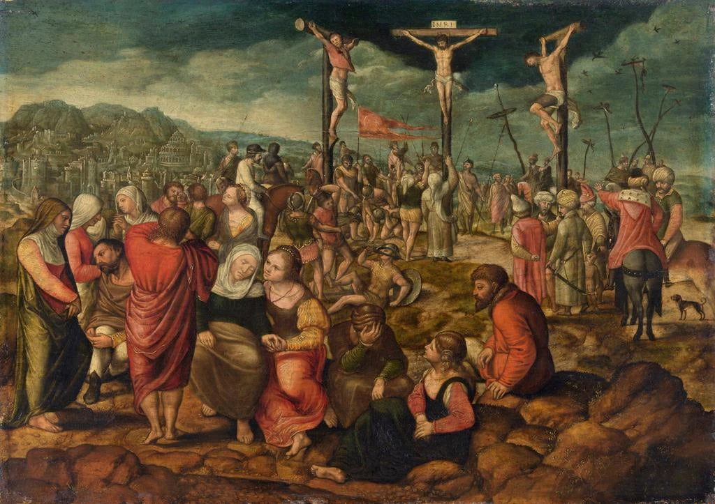 The art print Calvaire by Jan van Amstel evokes an atmosphere of reverence and spirituality. This piece, rich in detail, features a dynamic composition where the characters seem to interact with the surrounding landscape. Dark, earthy tones dominate, creating a striking contrast with luminous touches that illuminate the faces of the protagonists. The artist's technique, blending oil painting with fine brushwork, adds emotional depth to the scene. Every element, from the turbulent sky to the expressions of the figures, invites the viewer to introspective contemplation, thus revealing the power of faith.