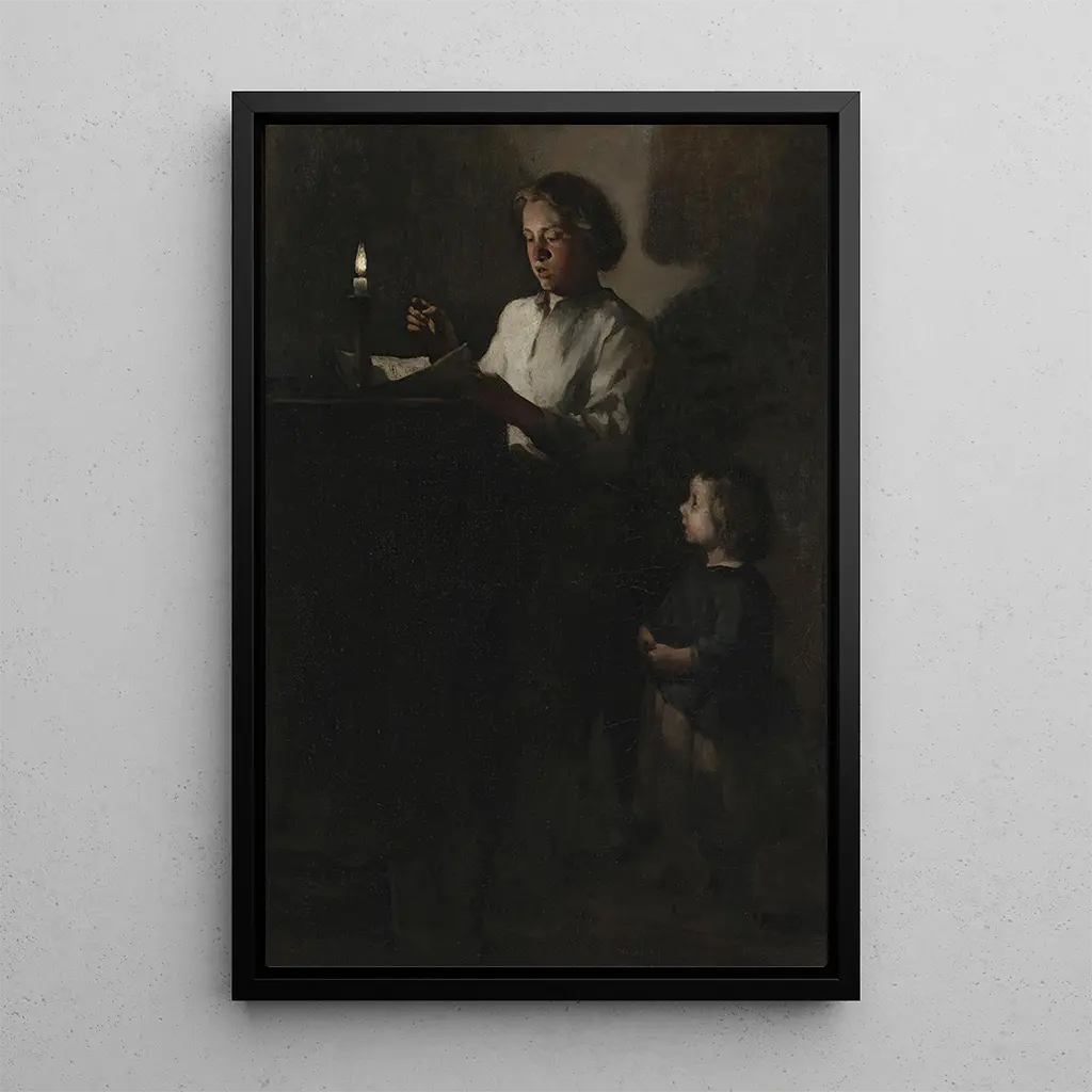 Reading by Candlelight: A luminous intimacy Reading by Candlelight, a captivating art print by Théodule Ribot, transports viewers into a world of gentle intimacy. The scene depicts a young woman absorbed in her reading, illuminated by the flickering glow of a candle. Warm colors and delicate shadows create a peaceful, contemplative atmosphere. Ribot's mastery of light, playing with reflections and contrasts, brings this composition to life, making the emotion of this suspended moment almost tangible. The art print invites reflection on the power of words and the magic of shared moments with a book. Théodule Ribot: an explorer of human emotions Théodule Ribot, a prominent figure of the 19th century, is often associated with the realist movement, seeking to depict everyday life with a unique sensitivity. His career spans several decades, during which he captured moments of pure emotion, influenced by artists such as Gustave Courbet. Ribot also explored themes of solitude and introspection, allowing him to stand out in the artistic landscape of his time. His works, like Reading by Candlelight, demonstrate his ability to evoke deep feelings through simple yet evocative scenes. A decorative art print with multiple assets The reproduction of Reading by Candlelight is an ideal choice to enhance your interior decor, whether in a living room, library, or office. Its print quality and fidelity to the nuances of the original work make this canvas a true aesthetic asset. By integrating this art print into your space, you bring a touch of warmth and serenity, while paying homage to Théodule Ribot's artistry. This artwork invites contemplation and daydreaming, creating an ambiance conducive to relaxation and escape.