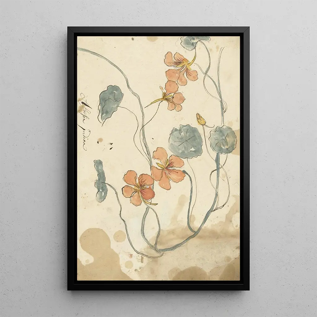 In "Capucine," Elias van Nijmegen captures the very essence of this vibrant flower, symbol of joy and vitality. The warm and luminous colors of the capucine, with its shades of orange and red, illuminate the canvas and create a welcoming atmosphere. The oil painting technique allows for rendering the delicate textures of the petals and leaves, offering a sense of depth and movement. This art print evokes the simple beauty of nature, inviting the viewer to appreciate the small wonders of the floral world.