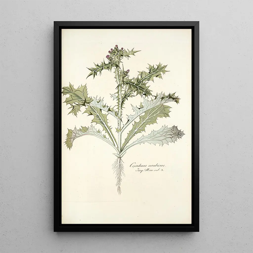 Carduus arabicus: a fascinating botanical exploration The art print of Carduus arabicus immerses us in a universe where nature reveals itself with delicacy. This painting, created by Nikolaus Joseph Freiherr von Jacquin, highlights an emblematic plant, with its green and violet hues blending harmoniously. The watercolor technique, used with precision, captures the intricate details of the leaves and flowers, creating an atmosphere that is both soothing and intriguing. The artist manages to convey the ephemeral beauty of this plant, inviting the viewer to appreciate the richness of biodiversity. Nikolaus Joseph Freiherr von Jacquin: a pioneer of botanical illustration Nikolaus Joseph Freiherr von Jacquin, a botanist and artist of the 18th century, played a crucial role in the scientific illustration of his time. Trained at the University of Vienna, he was influenced by the discoveries of his contemporaries and traveled across Europe and the Caribbean, enriching his botanical knowledge. His works, including those like Carduus arabicus, testify to his commitment to representing flora with scientific accuracy while maintaining an artistic dimension. Jacquin is often regarded as a forerunner in the field of botanical illustration, combining science and art in an innovative way. A decorative acquisition with multiple assets Opting for an art print of Carduus arabicus is choosing a piece that brings a touch of nature to your interior. Whether in a living room, office, or bedroom, this artwork easily fits into various decorating styles, adding a note of freshness and elegance. Its print quality and color fidelity make it an attractive decorative element, capable of inspiring admiration. By choosing this canvas, you give your space a unique piece that evokes the beauty of the plant world, while aesthetically and harmoniously enriching your environment.